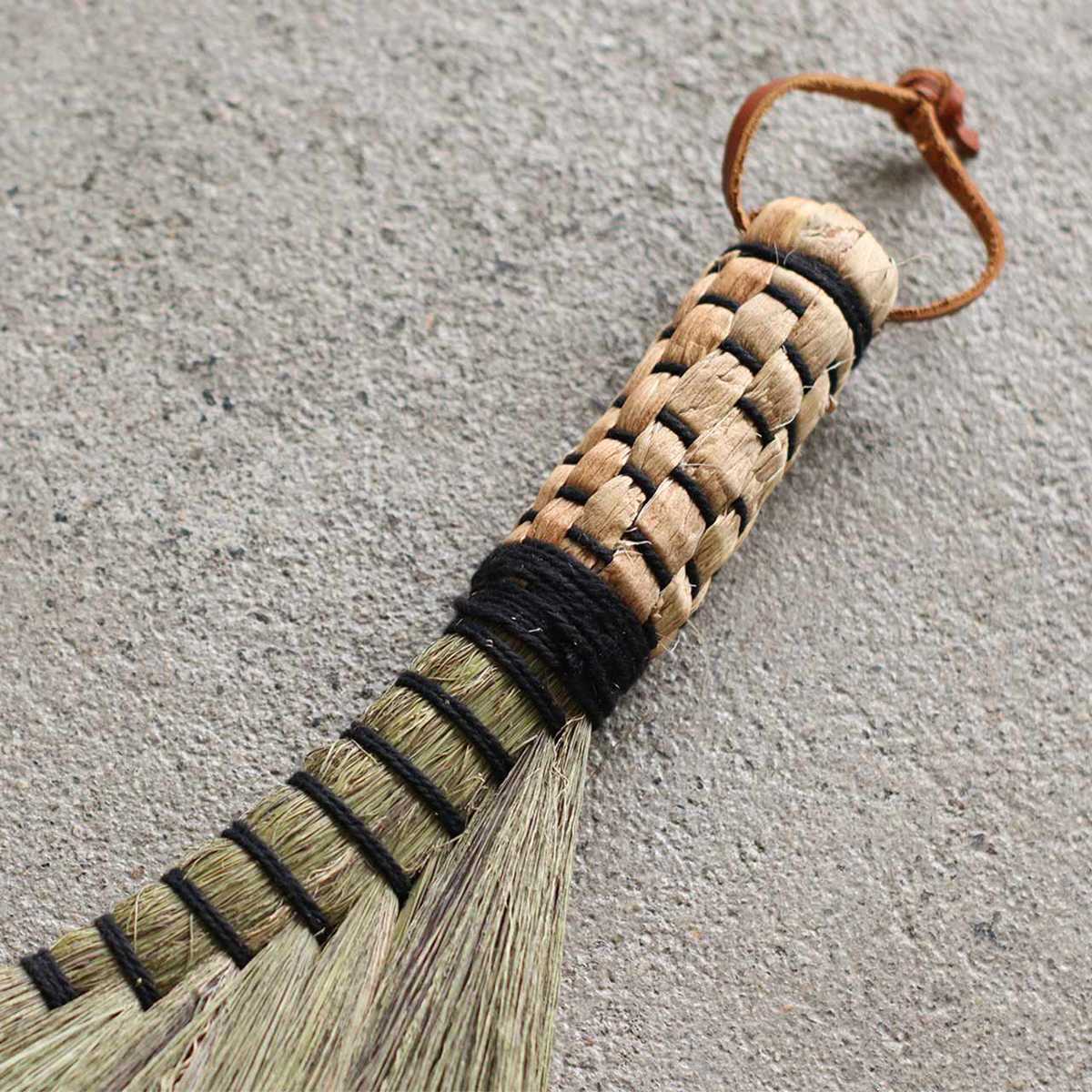 天然素材「タイガーグラス」というい草を使用し、丁寧に編み上げたほうきです。やわらかな掃き心地が特徴で、デスク上や棚などの掃除に適したハンディサイズ。掃除機を使いにくい場所のお手入れに活躍します。