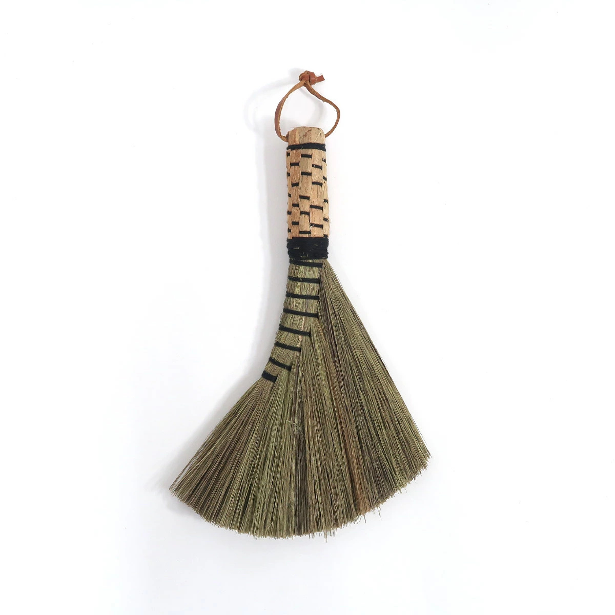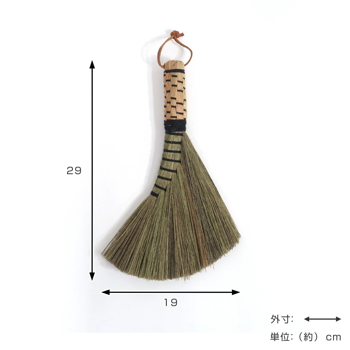 吊り下げて収納できる革ひもが付いています。下駄箱や棚など、毎日使いたい場所に掛けておけるので、思い立ったときにさっとお掃除ができます。使い終わった後も、そのまま飾っておきたくなるような、昔ながらの素朴な魅力溢れるほうきです。