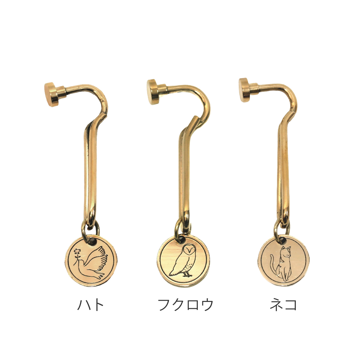 ●平和のシンボル「ハト」、幸運の鳥とされる「フクロウ」、かわいい「ネコ」の3種類あります。
