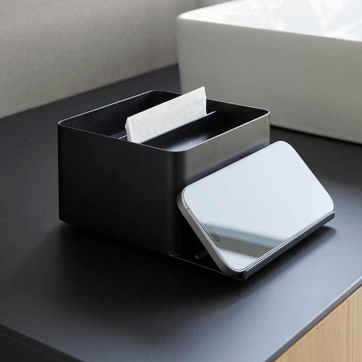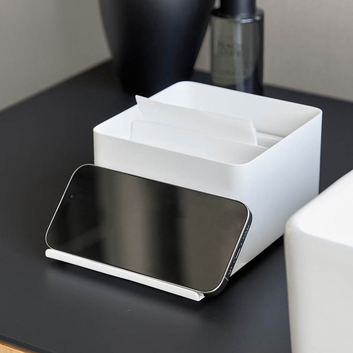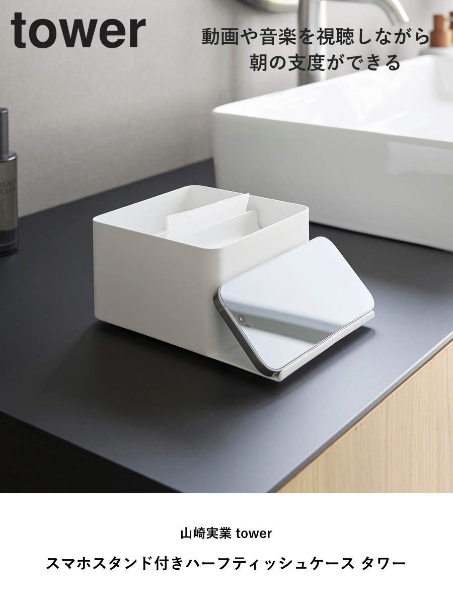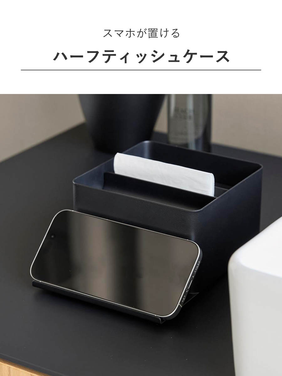 山崎実業 tower スマホスタンド付きハーフティッシュケース タワー ( 4903208107075 タワーシリーズ ハーフティッシュケース スマホスタンド スマホスタンド付き ティッシュケース ティッシュ ) 【ブラック】