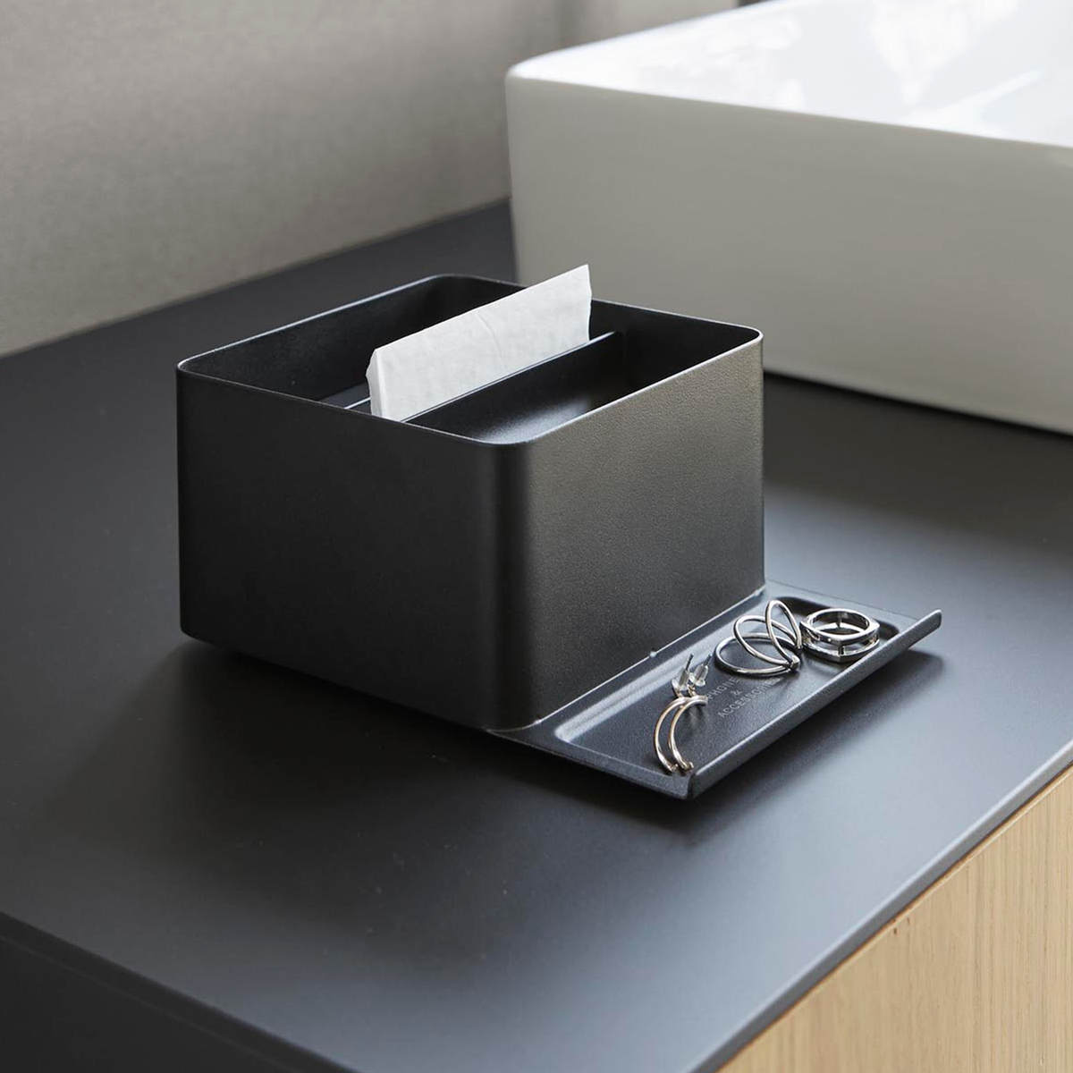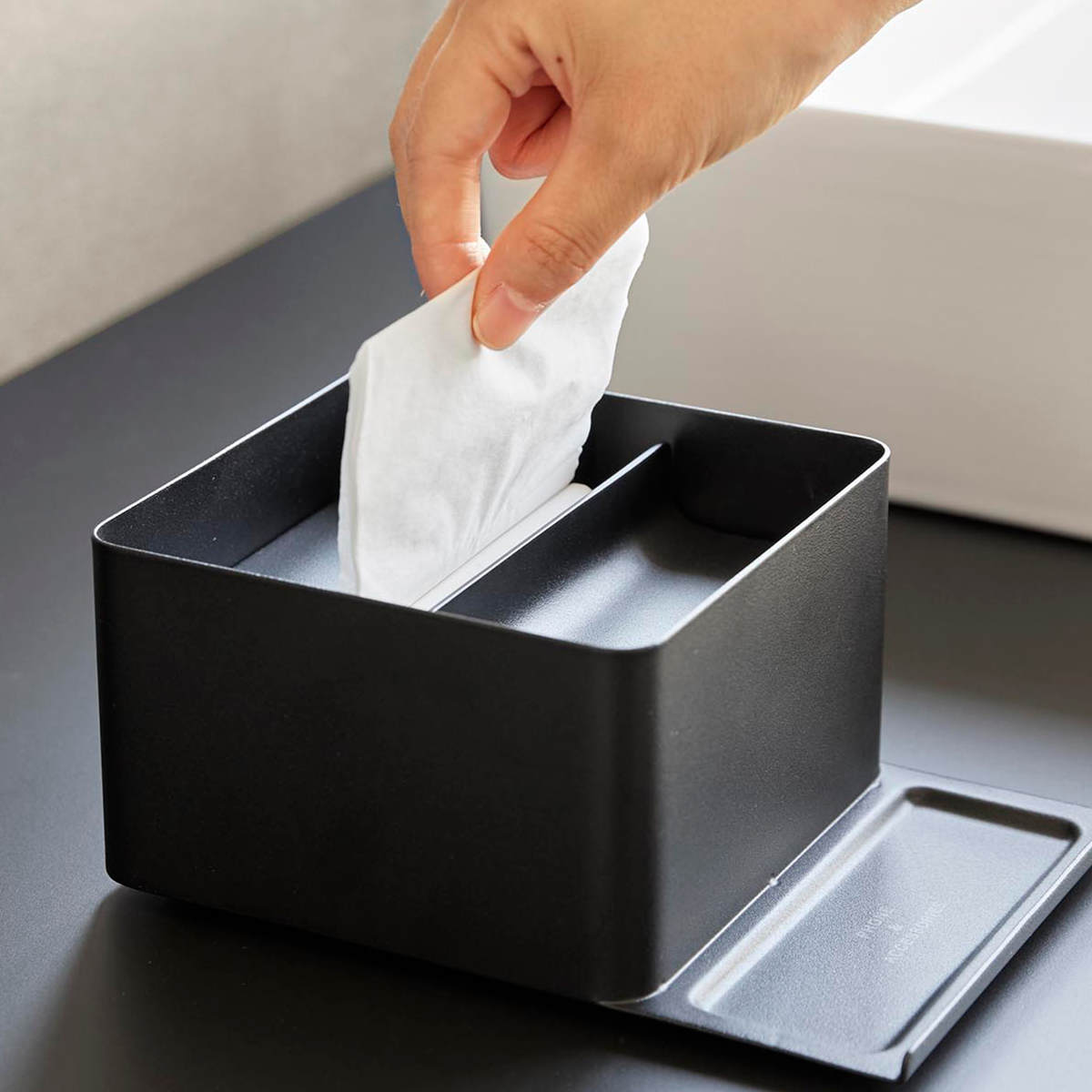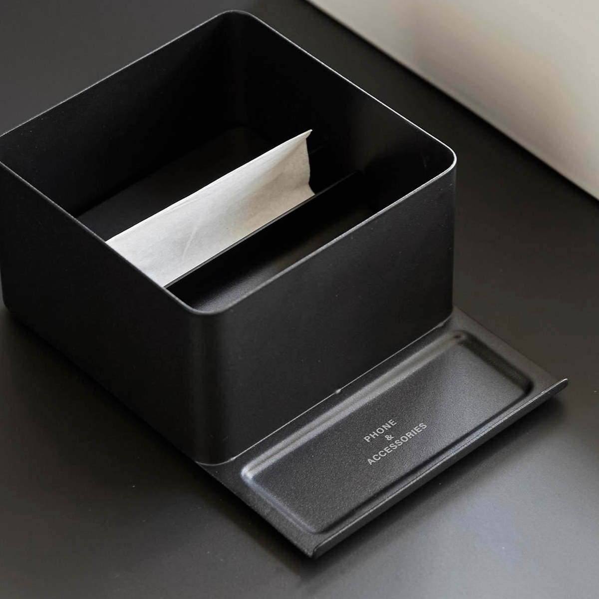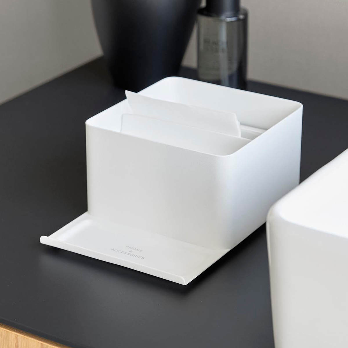 山崎実業 tower スマホスタンド付きハーフティッシュケース タワー ( 4903208107075 タワーシリーズ ハーフティッシュケース スマホスタンド スマホスタンド付き ティッシュケース ティッシュ ) 【ブラック】