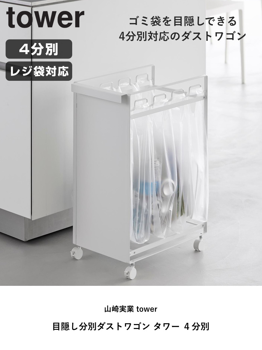 山崎実業 tower 目隠し分別ダストワゴン タワー 4分別 ( 4903208106184 タワーシリーズ 分別ダストボックス ごみ箱 分別ゴミ箱 目隠し 分別 キャスター付き レジ袋 ダストボックス ) 【ホワイト】