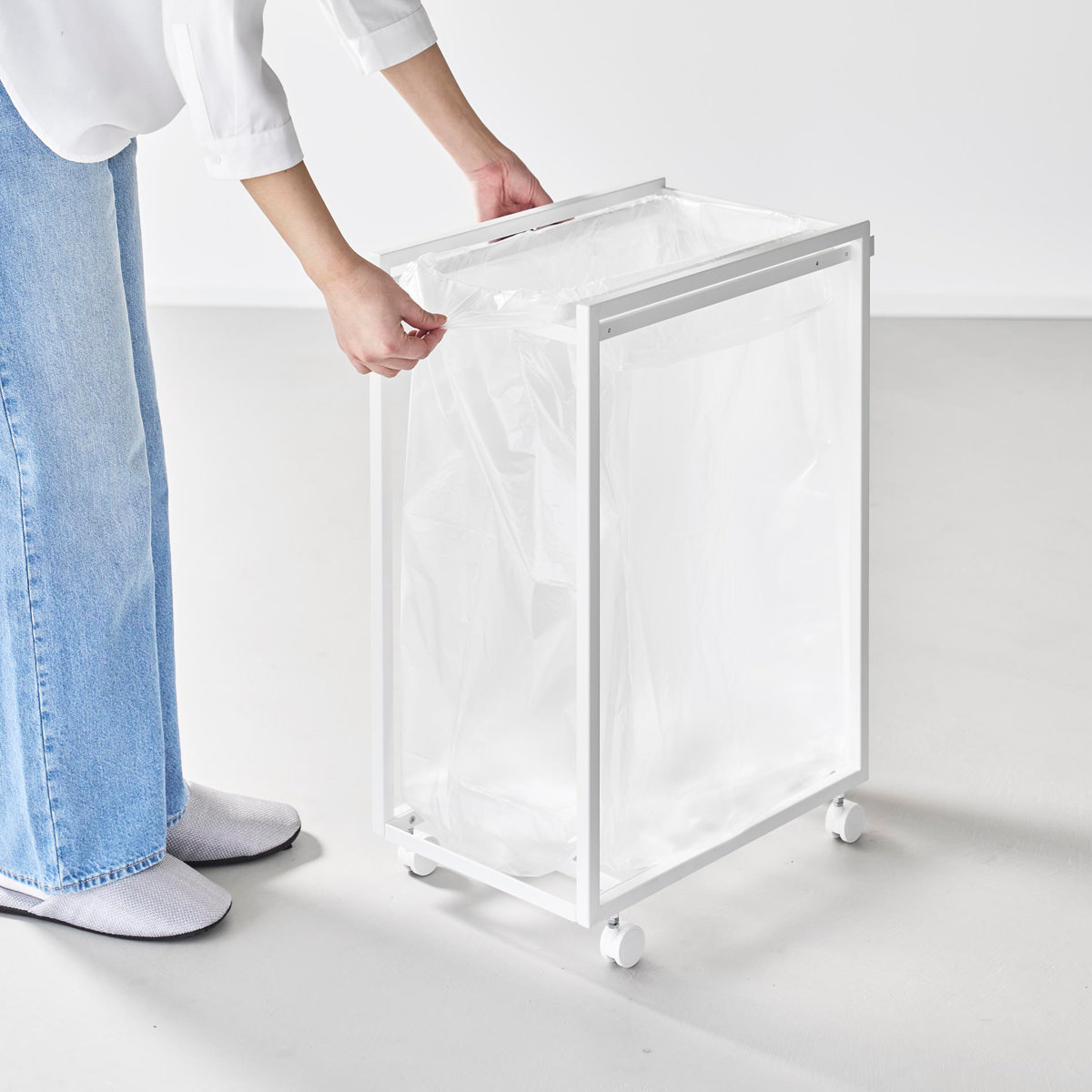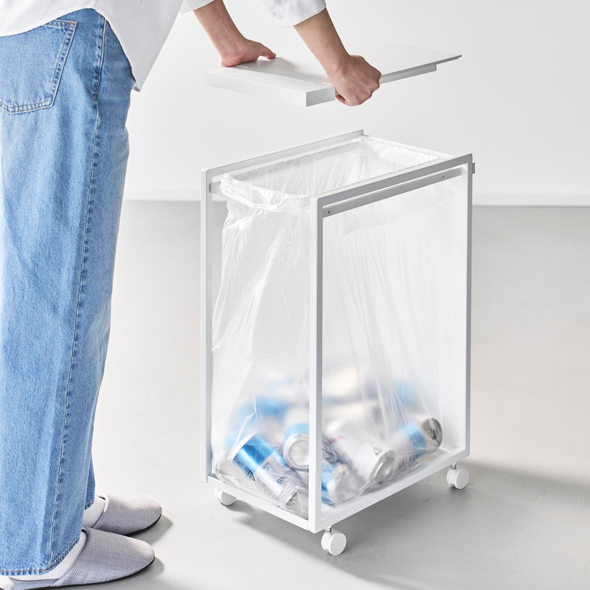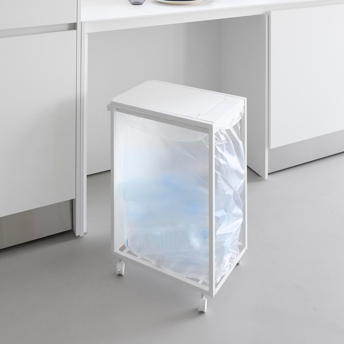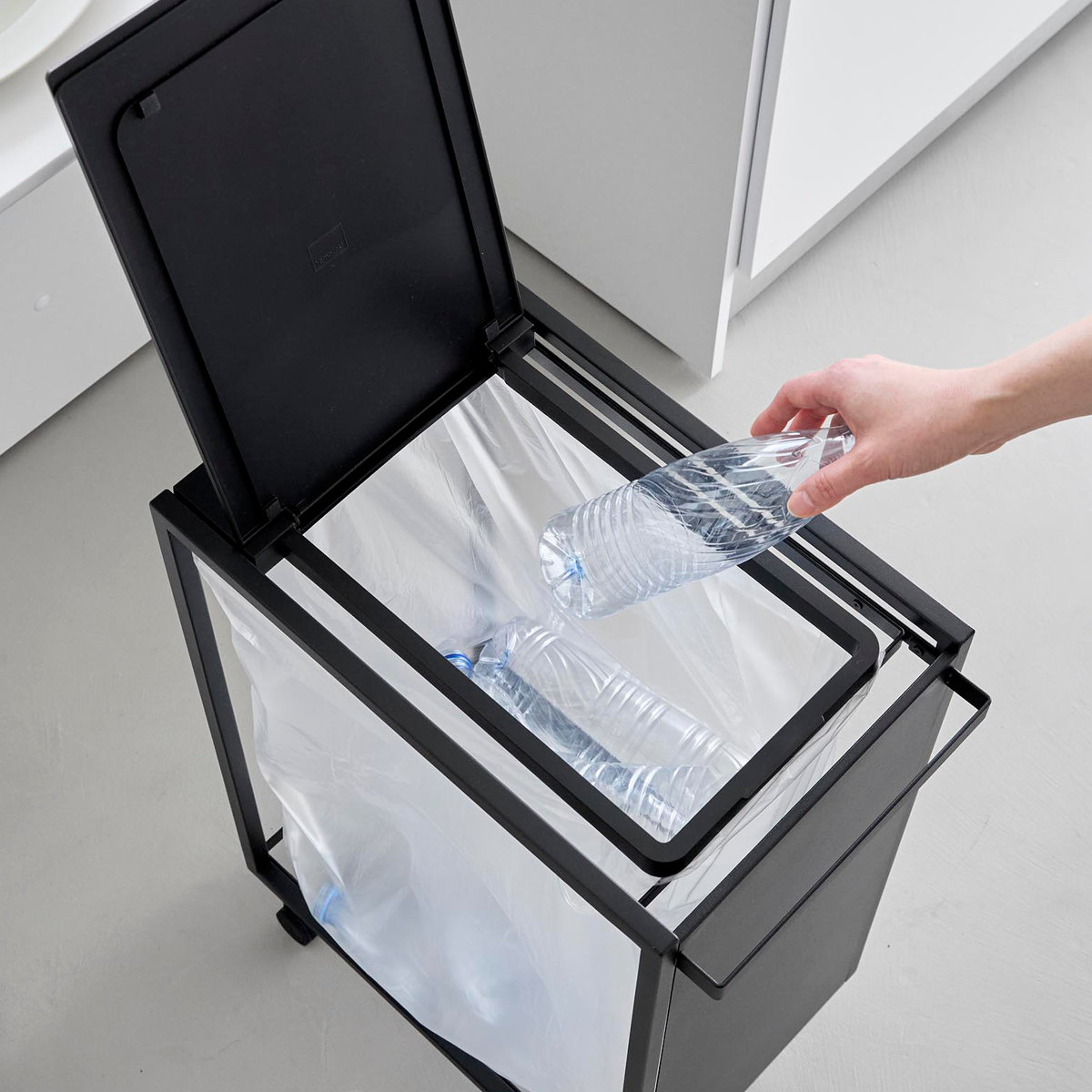 ゴミ袋をフレームに掛けて、上からフタでとめるだけのシンプルな構造です。手間なくセットでき、毎日の使いやすさにこだわりました。