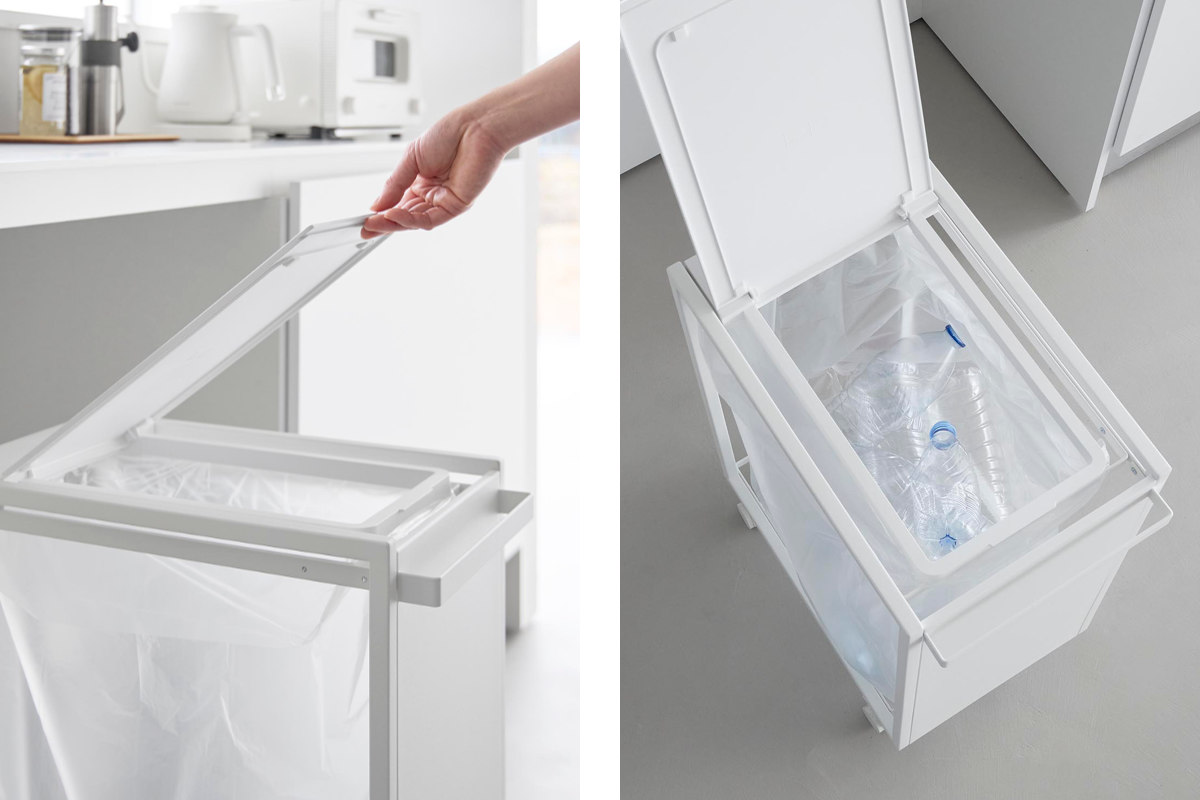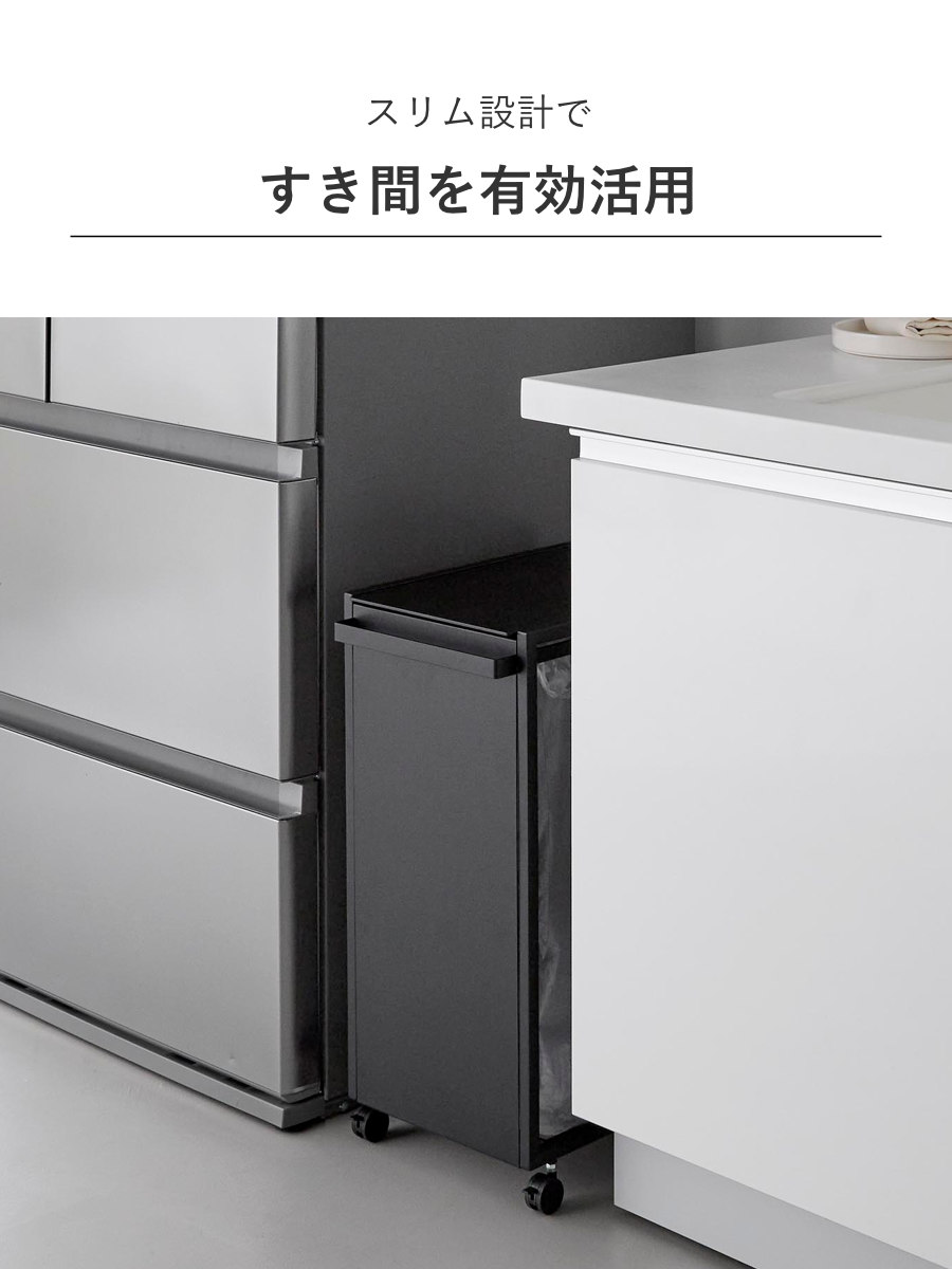 キッチン横はもちろん、冷蔵庫横の隙間にも設置できるスリム設計です。手を伸ばすだけでサッと捨てられ、家事動線をスムーズに整えます。