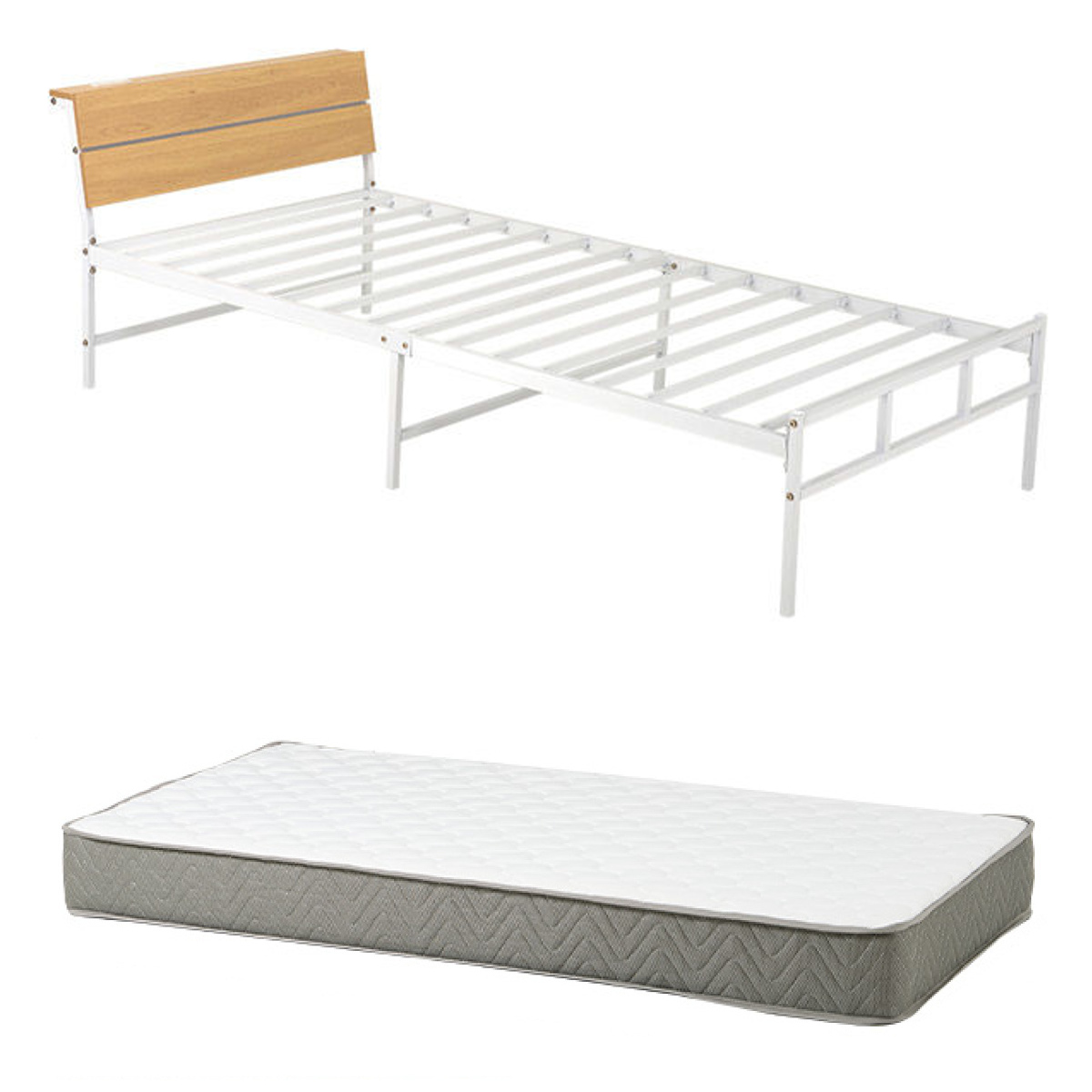 スチールベッド シングル ハイタイプ ボンネルコイルマットレス付 ( ベッド スチール 組立簡単 高耐荷重 お掃除ロボット対応 耐荷重300kg マットレスセット コンセント付き 連結可能 ダークブラウン グレー ホワイト ) 【ナチュラル】