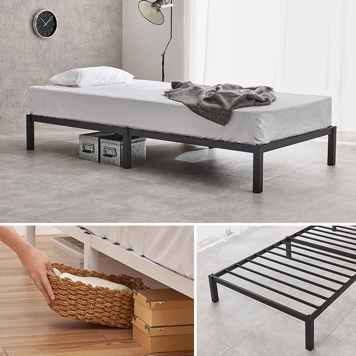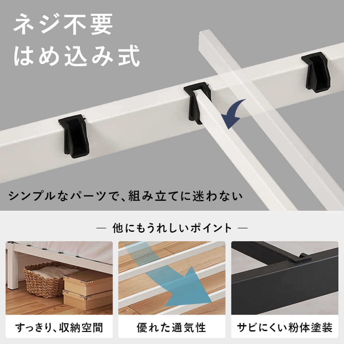 スチールベッド シングル 工具不要 ( ベッド スチールフレーム お掃除ロボット対応 組み立て簡単 寝具 耐荷重150kg シンプル ブラック ホワイト ) 【ブラック】