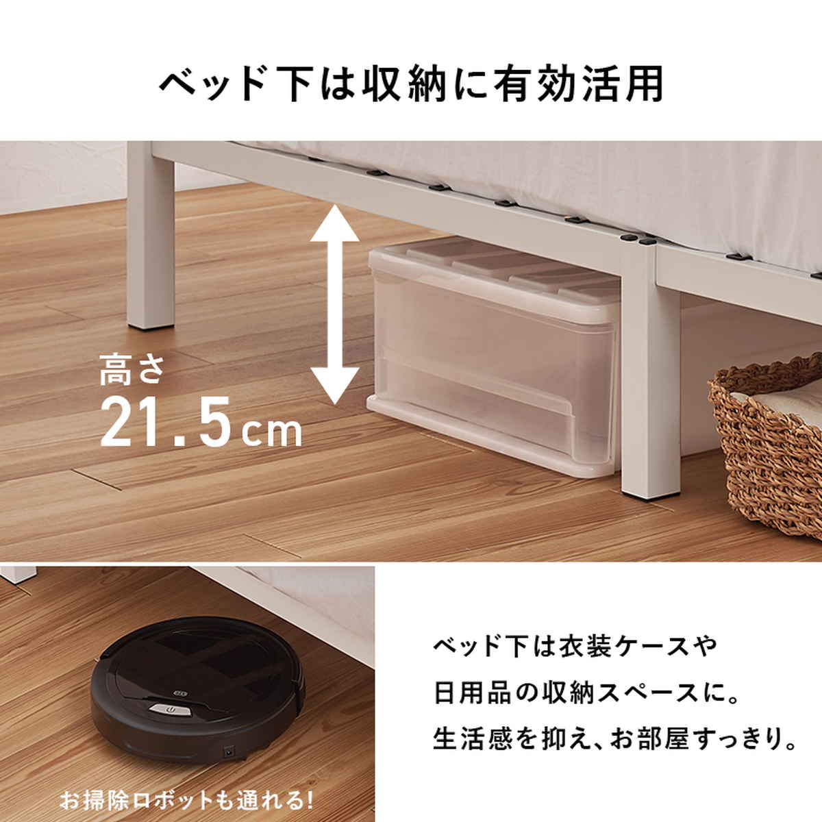 ベッド下に十分な高さがあるため、お掃除ロボットもスムーズに通過。毎日の掃除がぐっとラクになります。