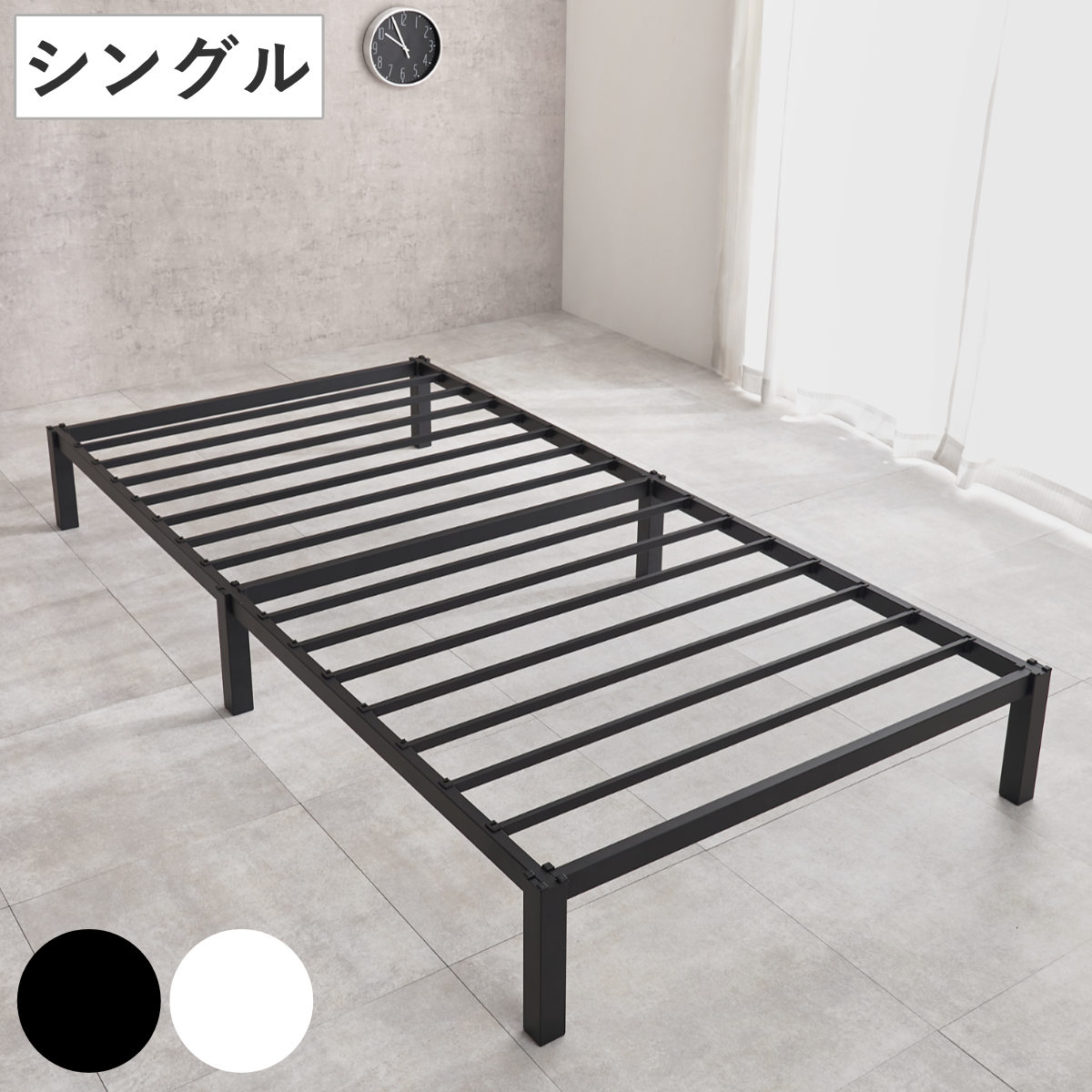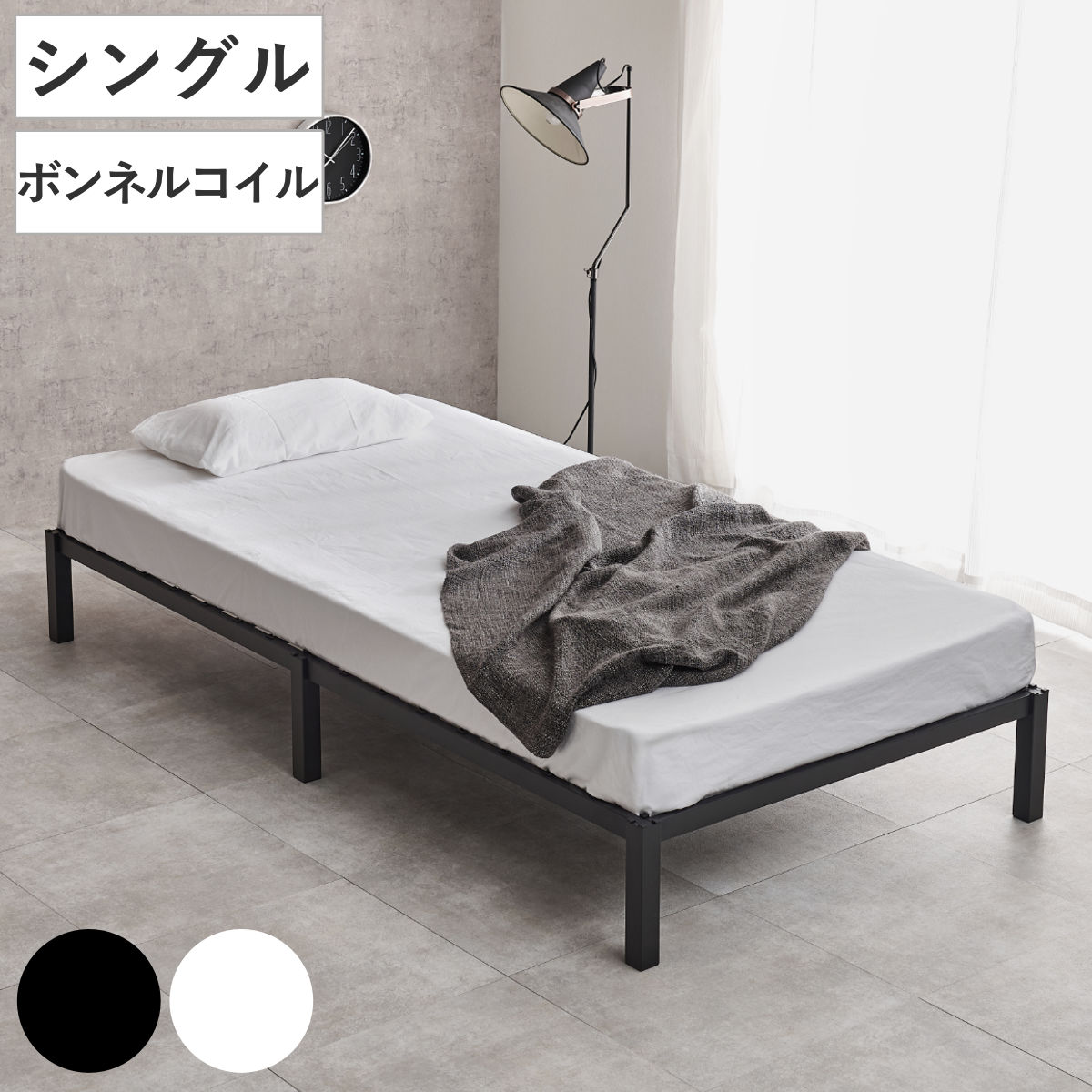 スチールベッド シングル ポケットコイルマットレス付 工具不要 ( ベッド スチールフレーム お掃除ロボット対応 組み立て簡単 マットレス付き 圧縮梱包 寝具 耐荷重150kg シンプル ブラック ホワイト ) 【ブラック】