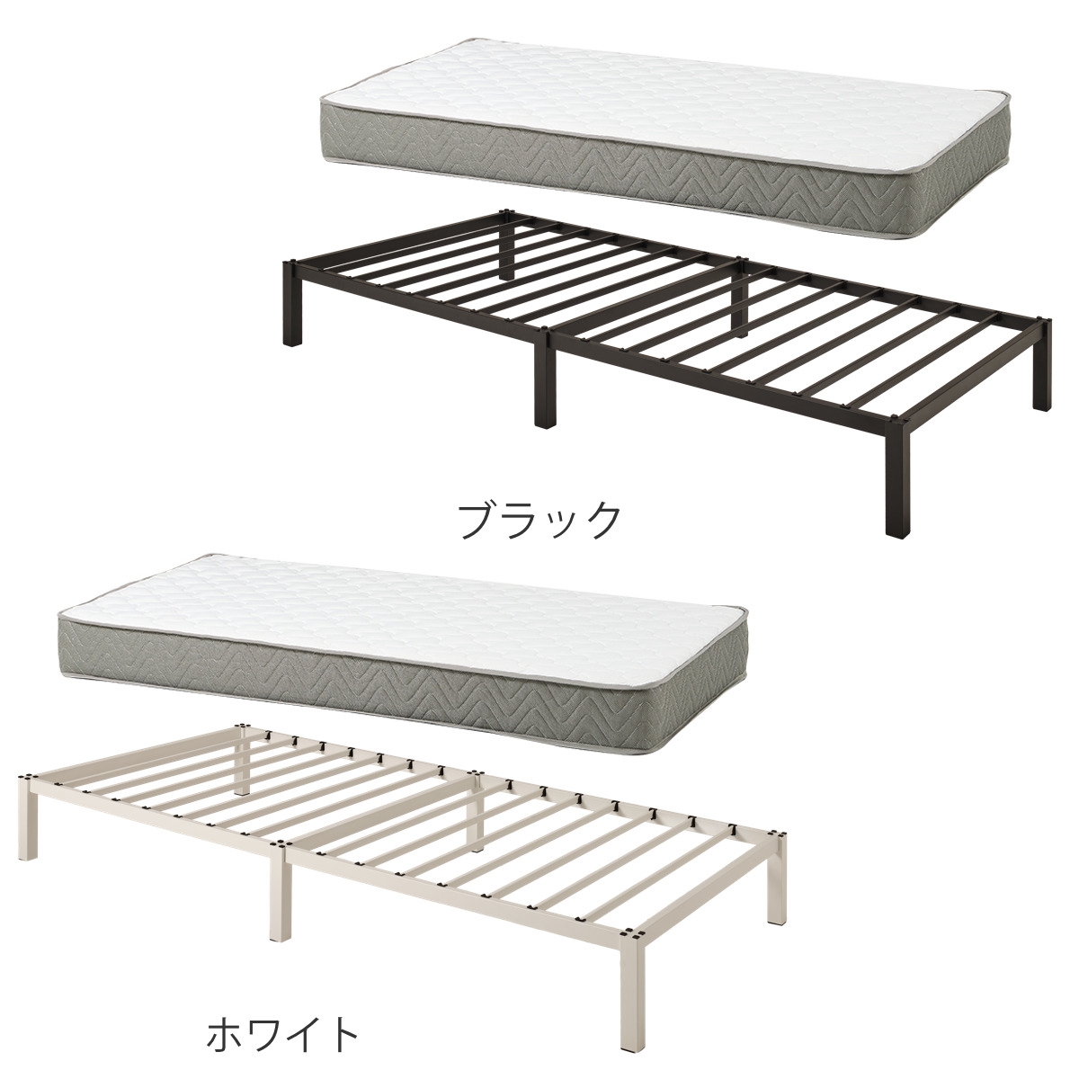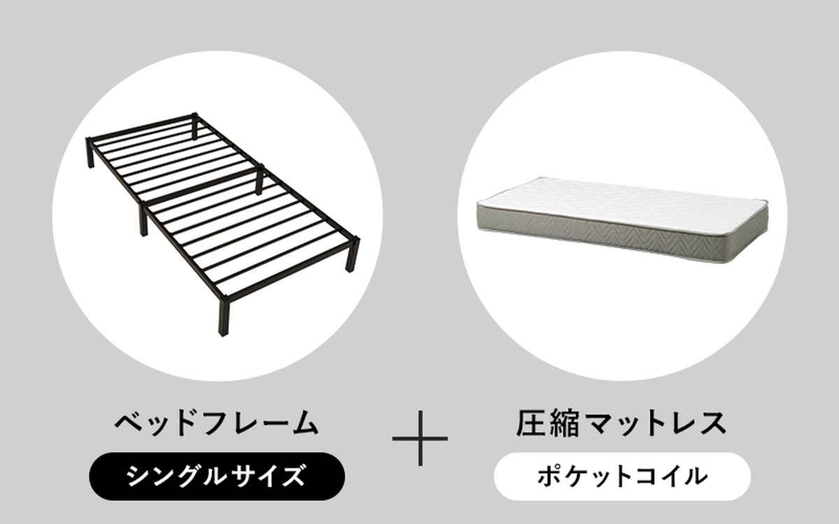 ![]() ベッドフレーム単品 | ![]() ボンネルコイルマットレス付き | ![]() ポケットコイルマットレス付き 【▲このページの商品】 |