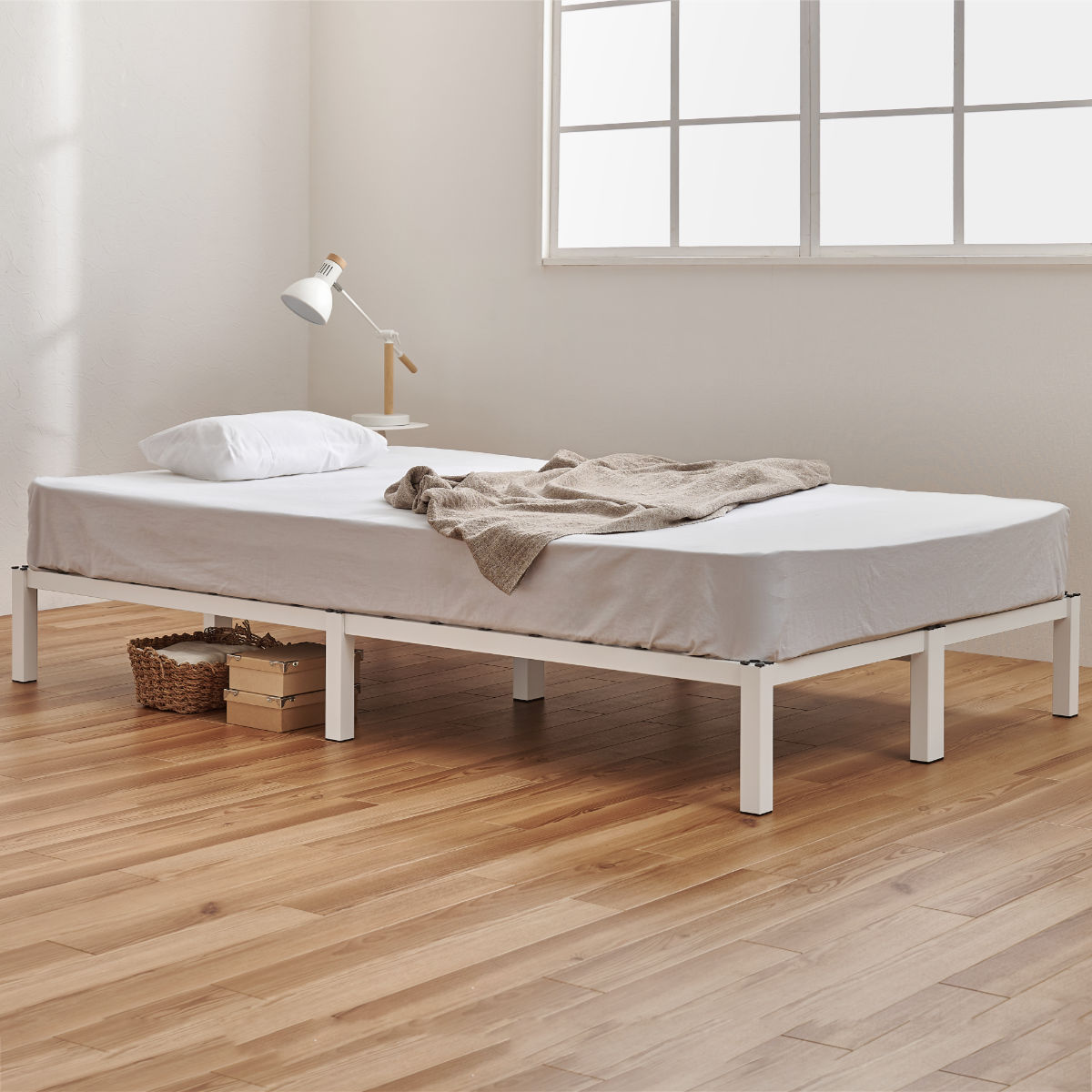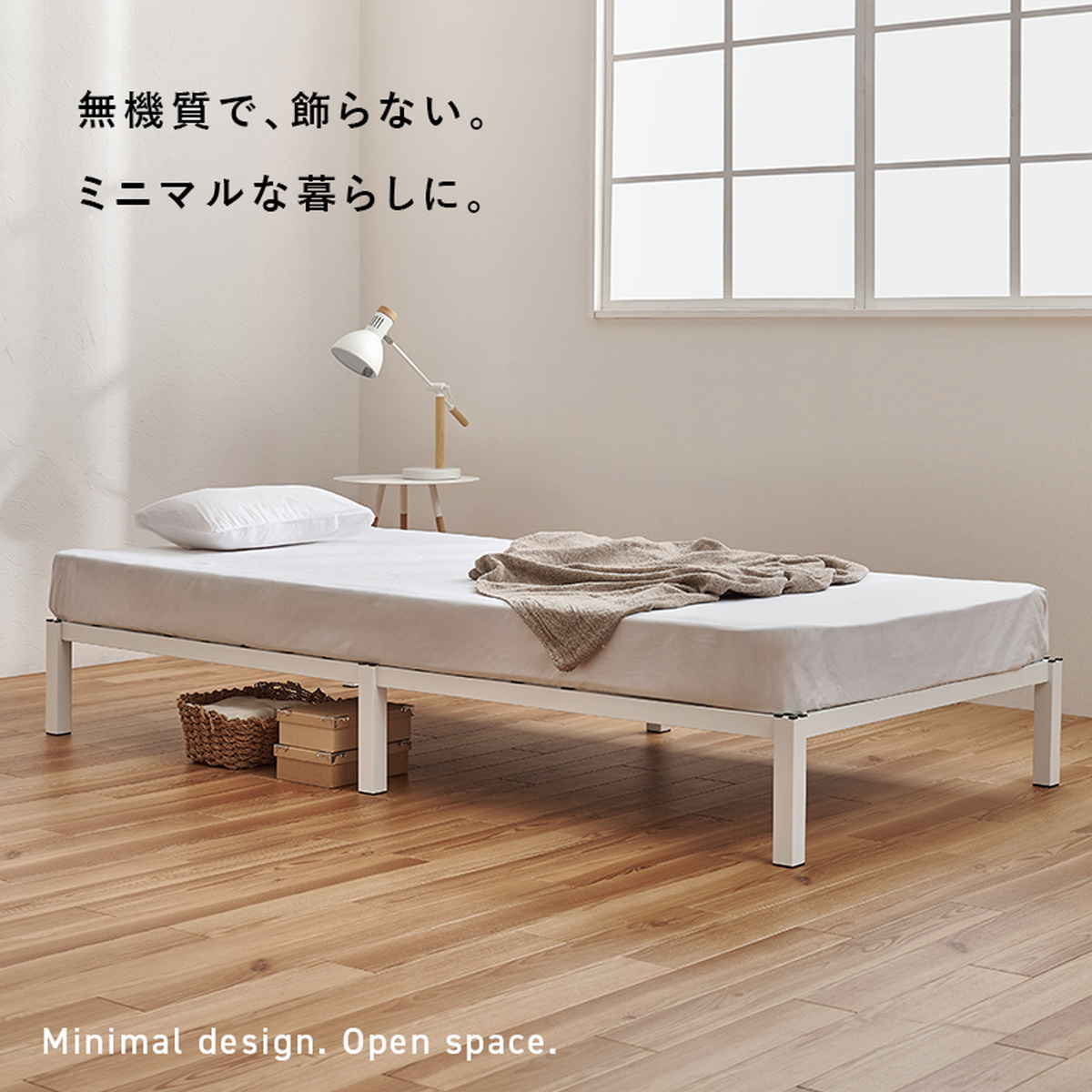 傷やサビに強く、耐久性のあるスチール素材を使用したベッドです。ネジ頭が見えない設計で、見た目もすっきり、無駄のないシンプルデザインがお部屋を広く見せ、インテリアに自然に馴染みます。