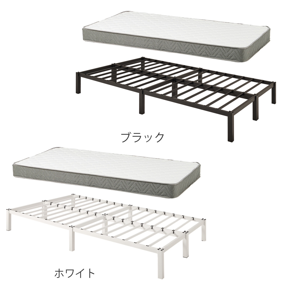![]() ベッドフレーム単品 | ![]() ボンネルコイルマットレス付き 【▲このページの商品】 | ![]() ポケットコイルマットレス付き |