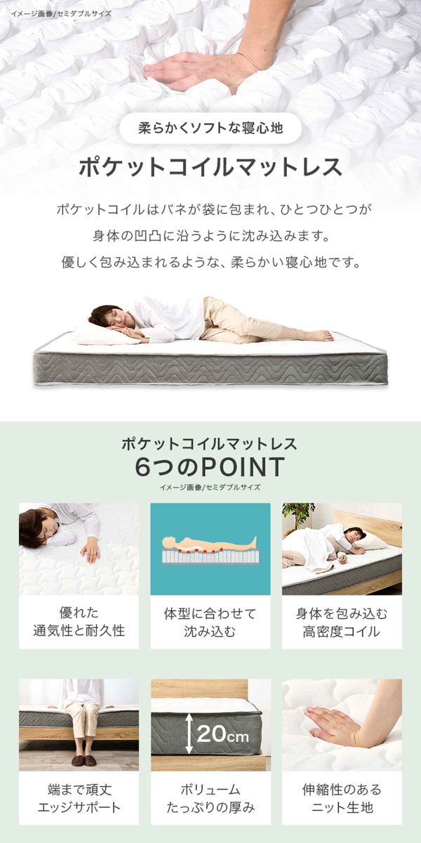 ポケットコイルマットレス付き セミダブル