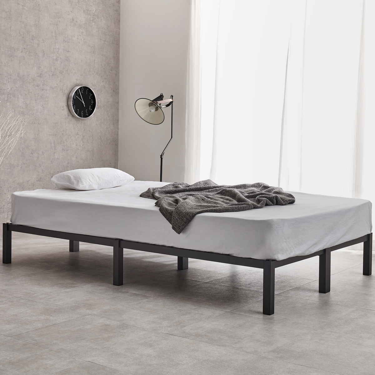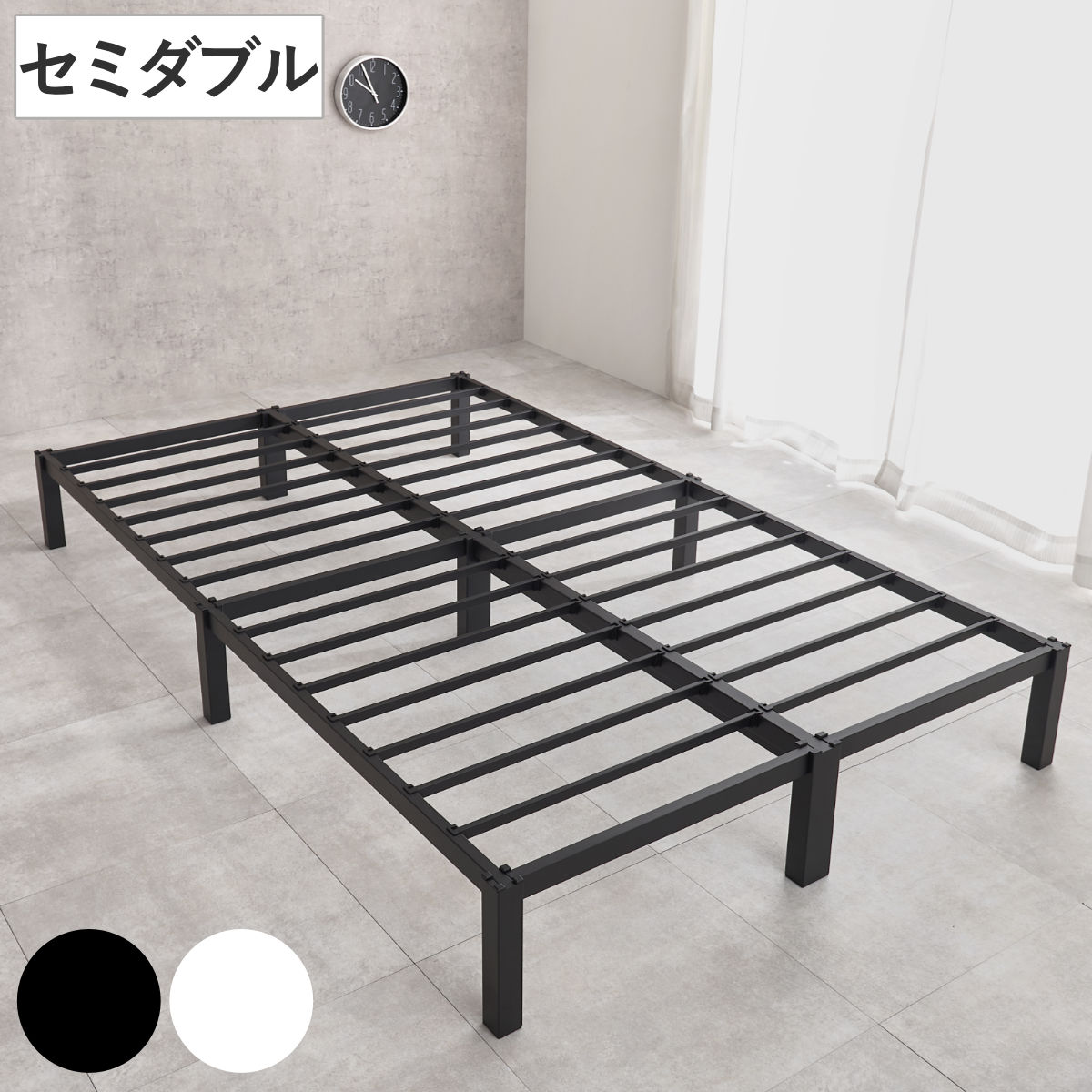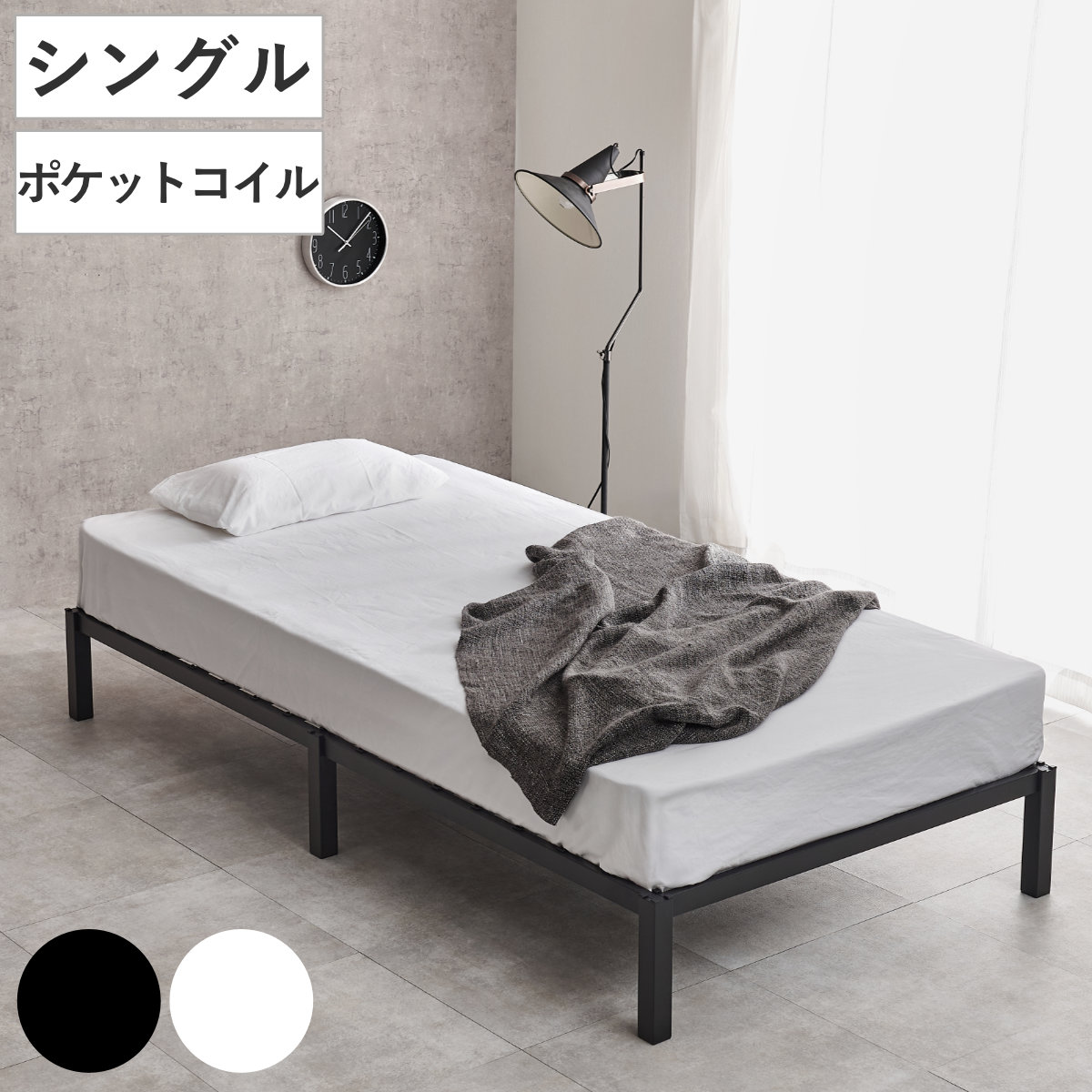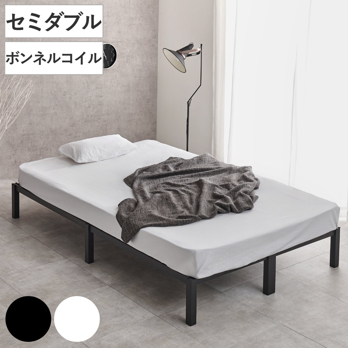 スチールベッド セミダブル ポケットコイルマットレス付 工具不要 ( ベッド スチールフレーム お掃除ロボット対応 組み立て簡単 マットレス付き 圧縮梱包 寝具 耐荷重150kg シンプル ブラック ホワイト ) 【ホワイト】