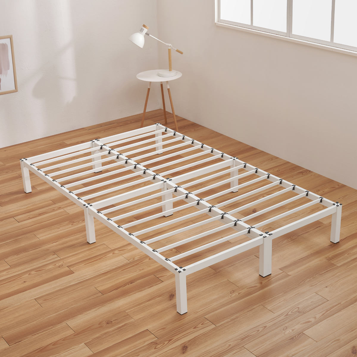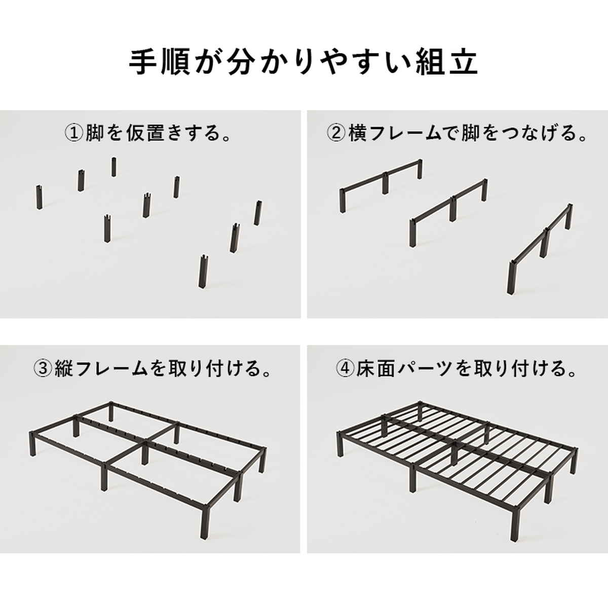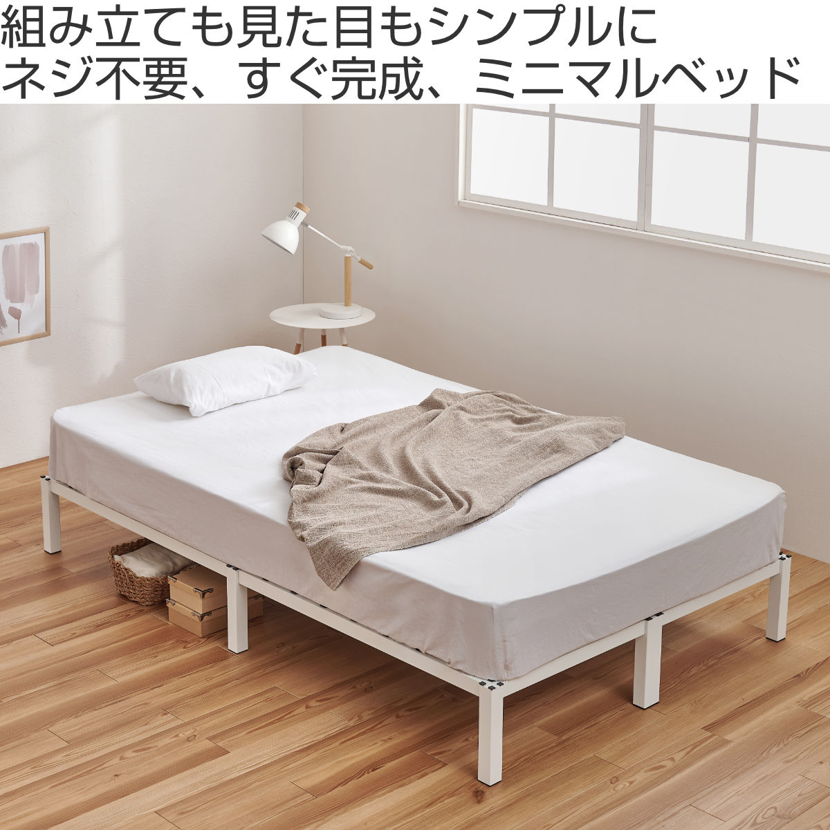 ネジ頭が見えない設計で、見た目もすっきりなベッドです。無駄のないシンプルデザインがお部屋を広く見せ、インテリアに自然に馴染みます。