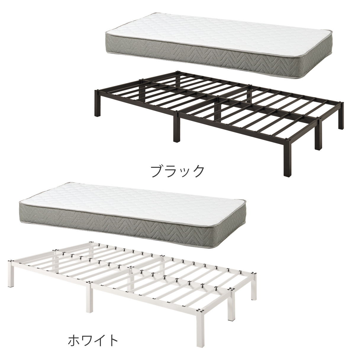 ![]() ベッドフレーム単品 | ![]() ボンネルコイルマットレス付き | ![]() ポケットコイルマットレス付き 【▲このページの商品】 |