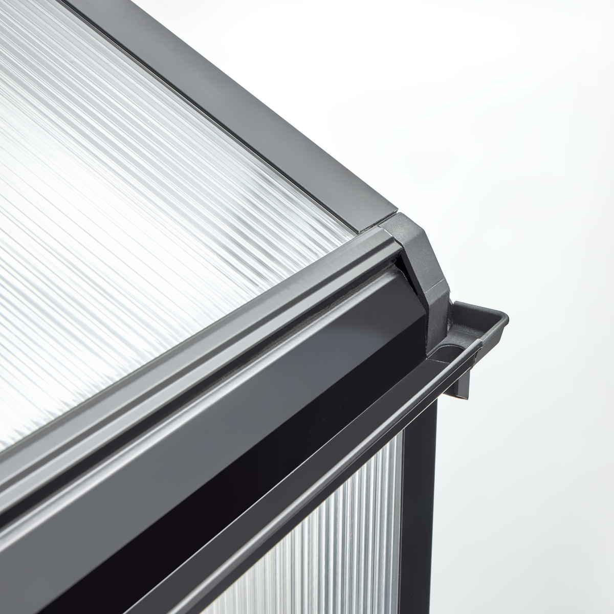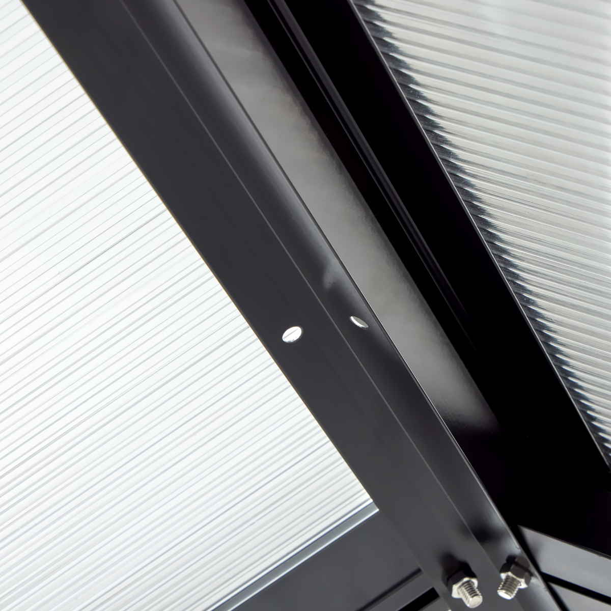 | 材質 | フレーム:アルミニウム合金(焼付塗装仕様) ジョイント:PA66(ナイロン66) パネル:中空ポリカーボネートシート(耐候グレード、UVカット) |