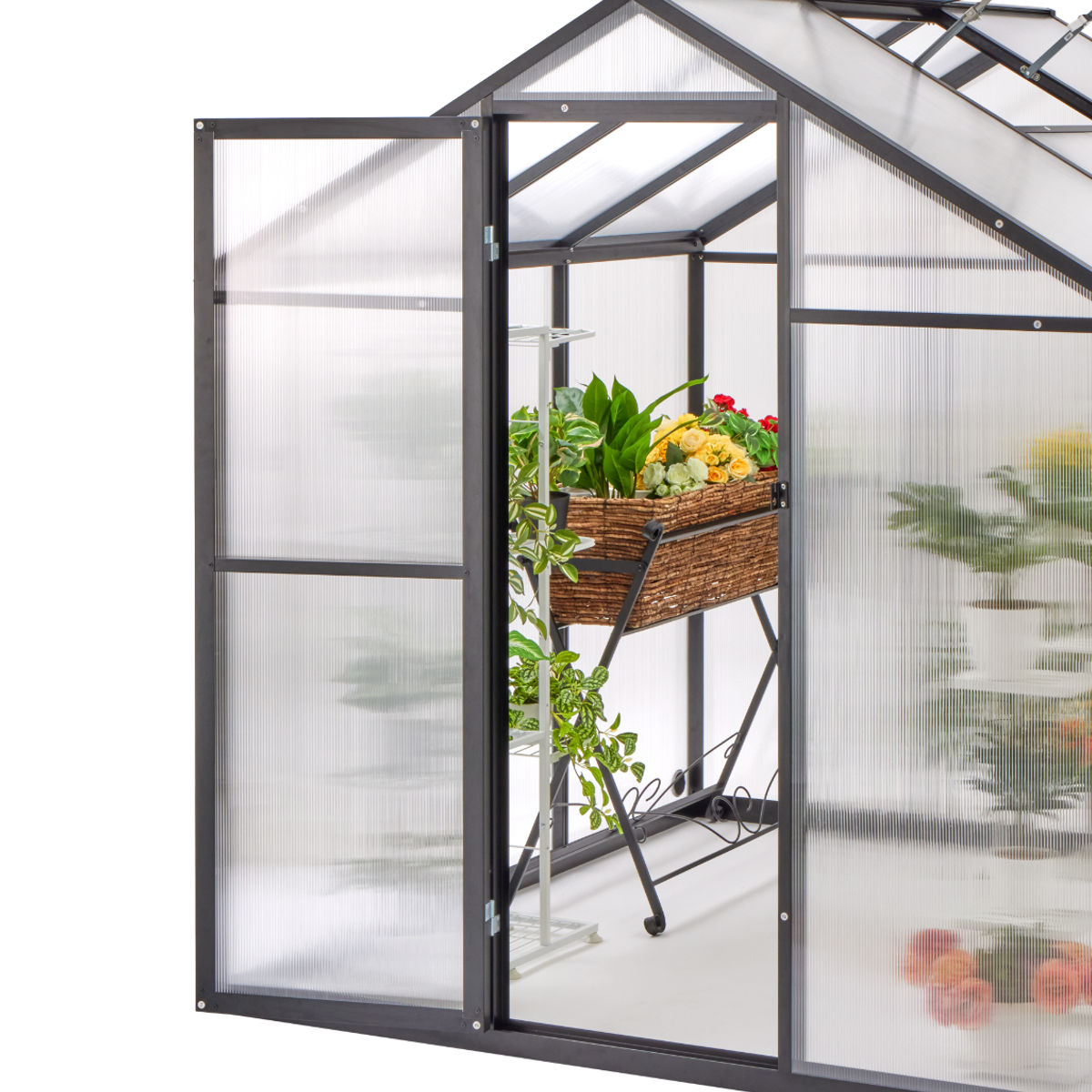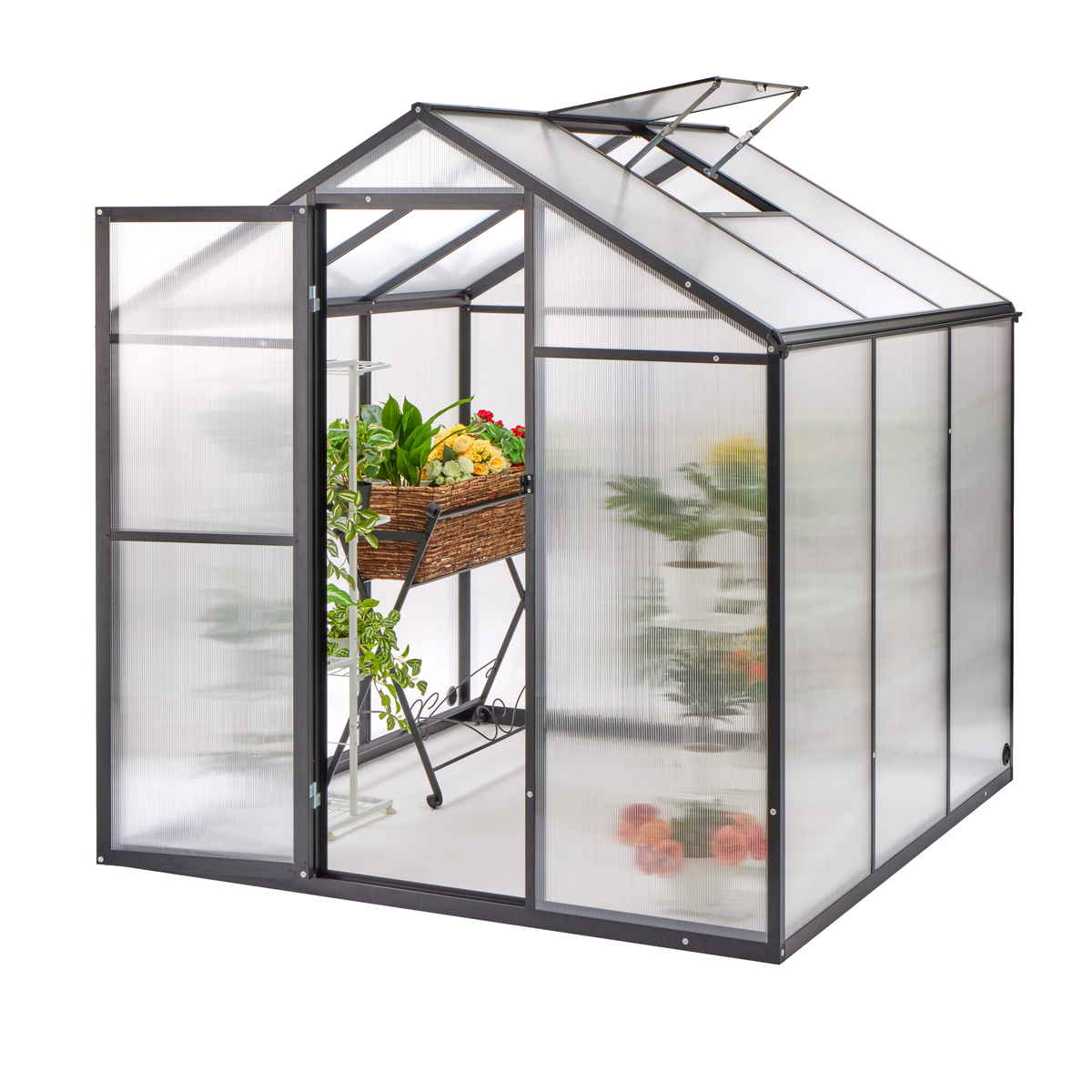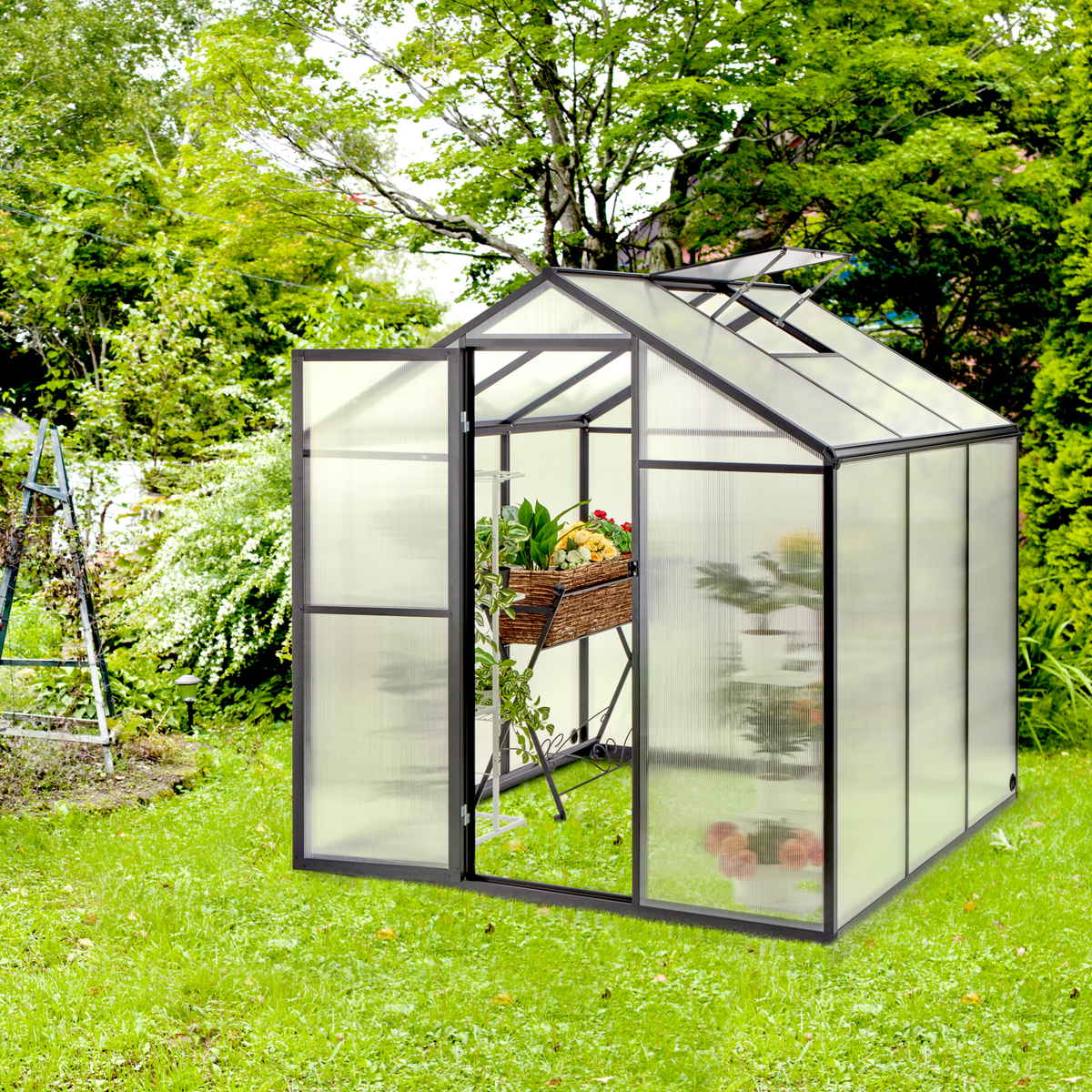 UVカット・耐候・換気機能を備えた、高機能グリーンハウスです。フレームにはアルミニウム合金を採用し、軽量でありながら高い耐久性を実現しています。