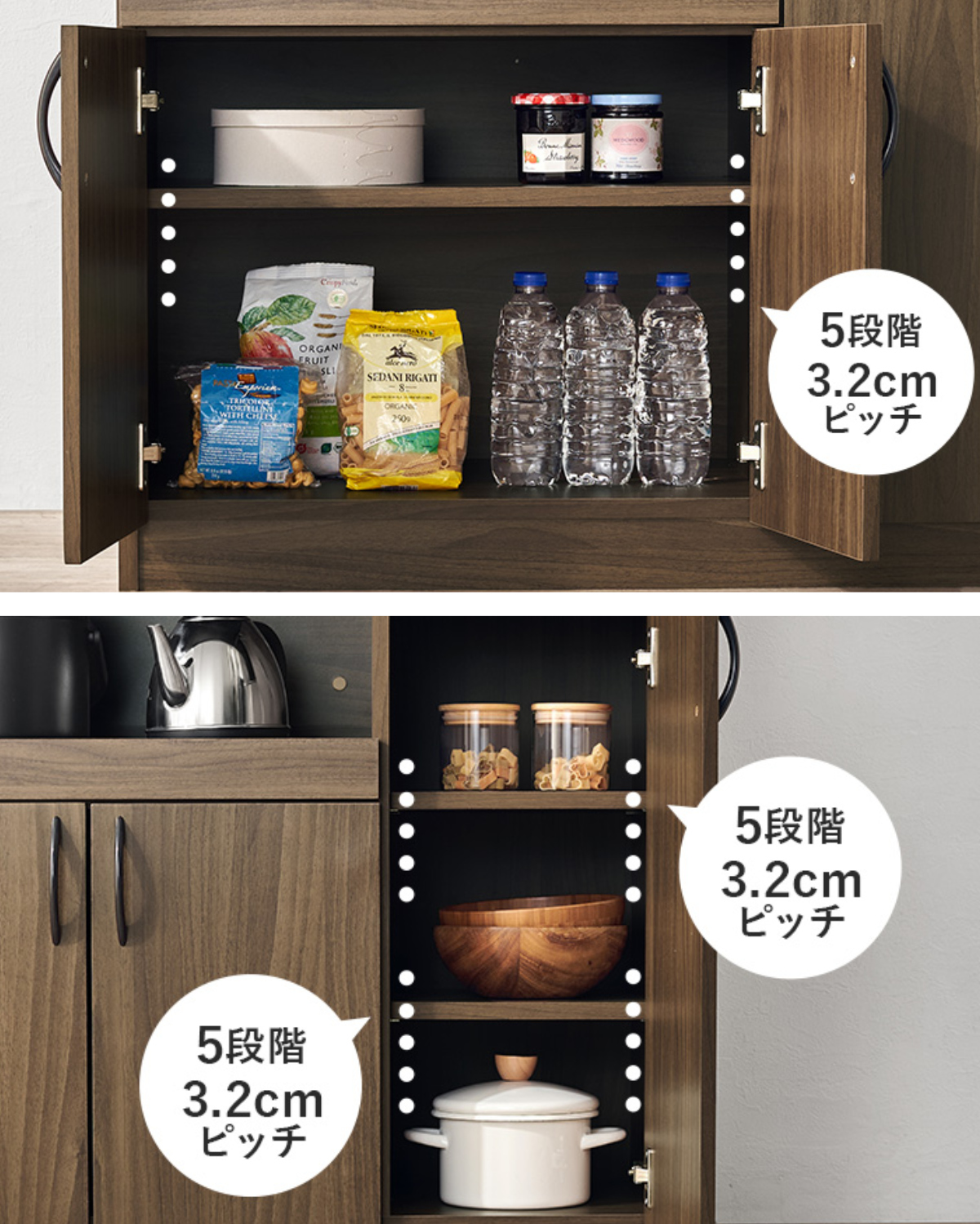 扉収納内各棚板:【3.2cmピッチ5段階】