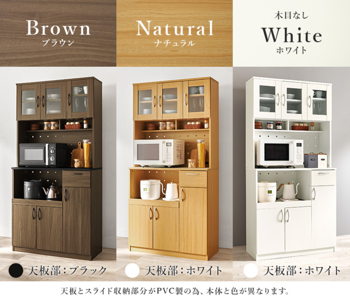 ![]() 食器棚 幅89cm ワイド収納タイプ 【▲このページの商品】 | ![]() 食器棚 幅89cm 引出し4段タイプ |