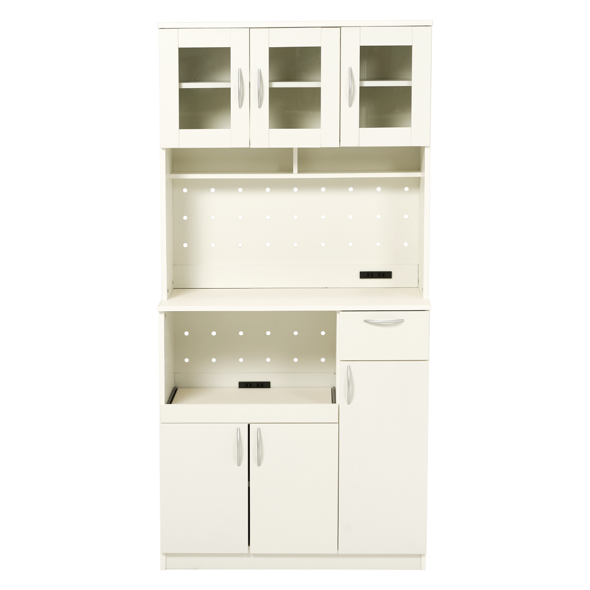 食器棚 幅89cm コンセント付き 木目調 大容量 ( カップボード レンジ台 ラック 棚 収納 レンジラック 食器収納 引き出し 家電収納 ブラウン ナチュラル ホワイト ) 【ホワイト】