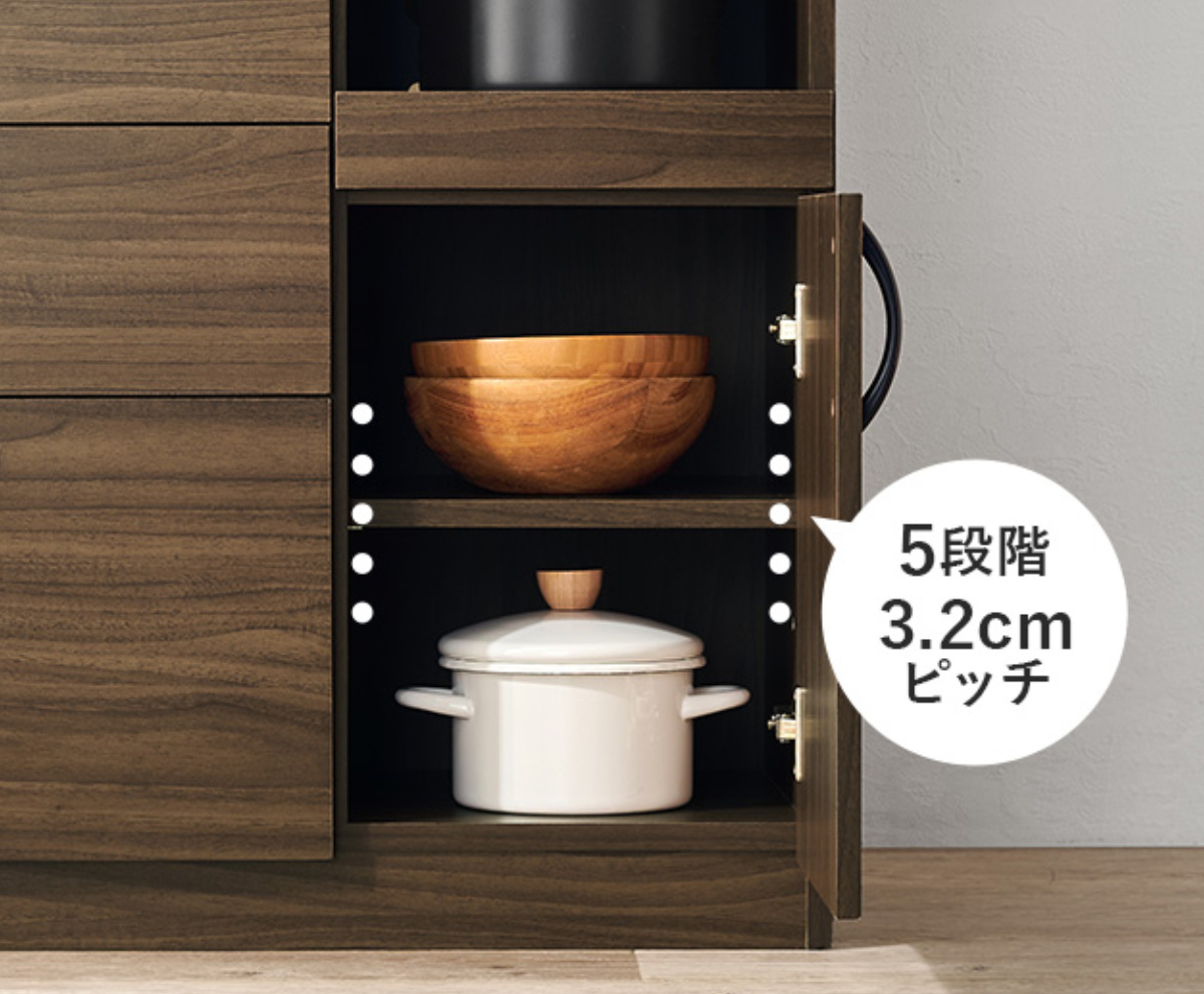 7つの収納スペースで大容量収納が叶うキッチンボード 幅89cm