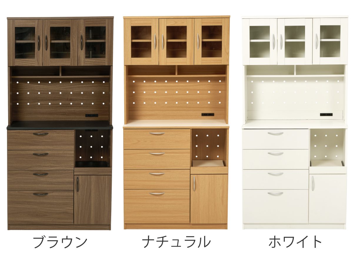 ![]() 食器棚 幅89cm ワイド収納タイプ | ![]() 食器棚 幅89cm 引出し4段タイプ 【▲このページの商品】 |