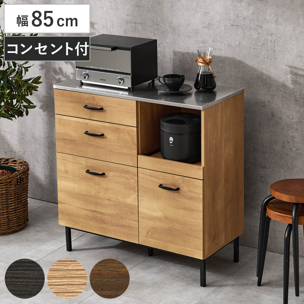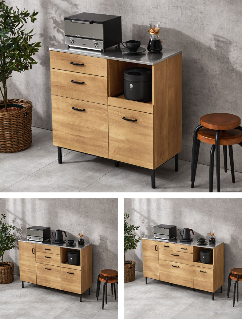 キッチンのスペースに合わせて、幅85cm・120cm・140cmの3サイズからお選びいただけます。