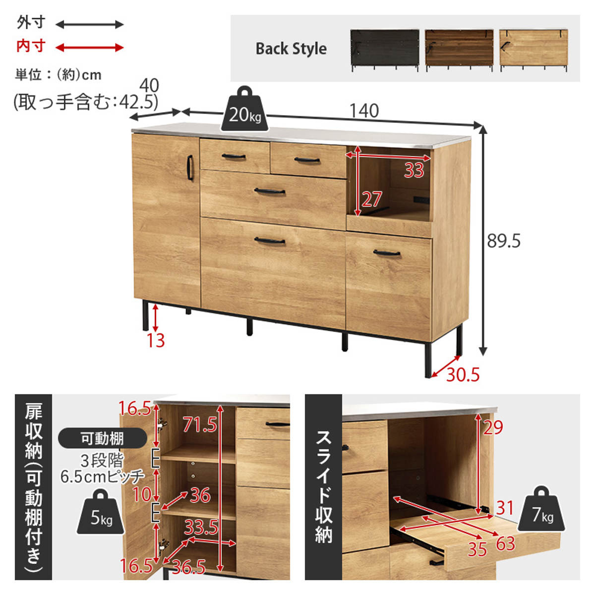 | 天板耐荷重 | 20kg |