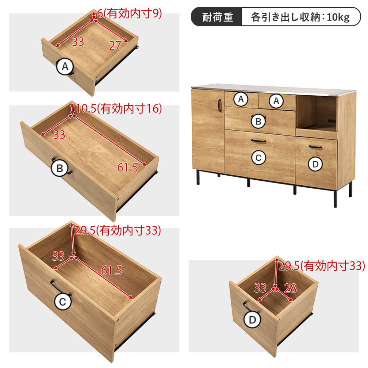 | 引き出し1段あたり耐荷重 | 10kg |