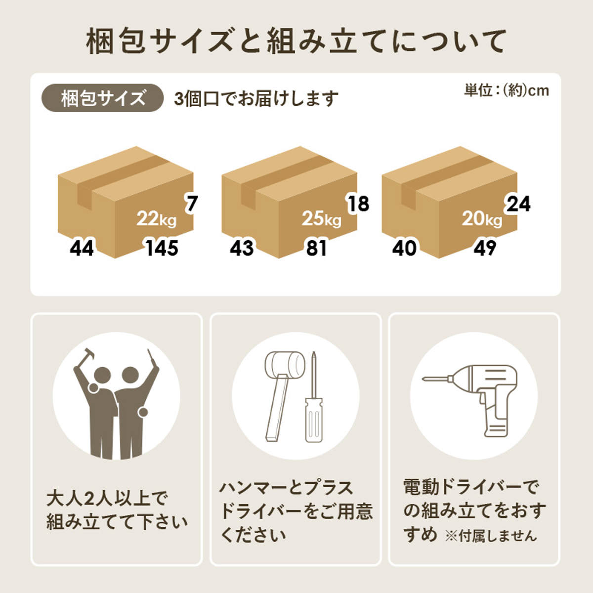 | お届け梱包数 | 3個口 |