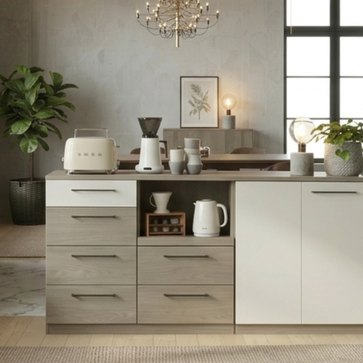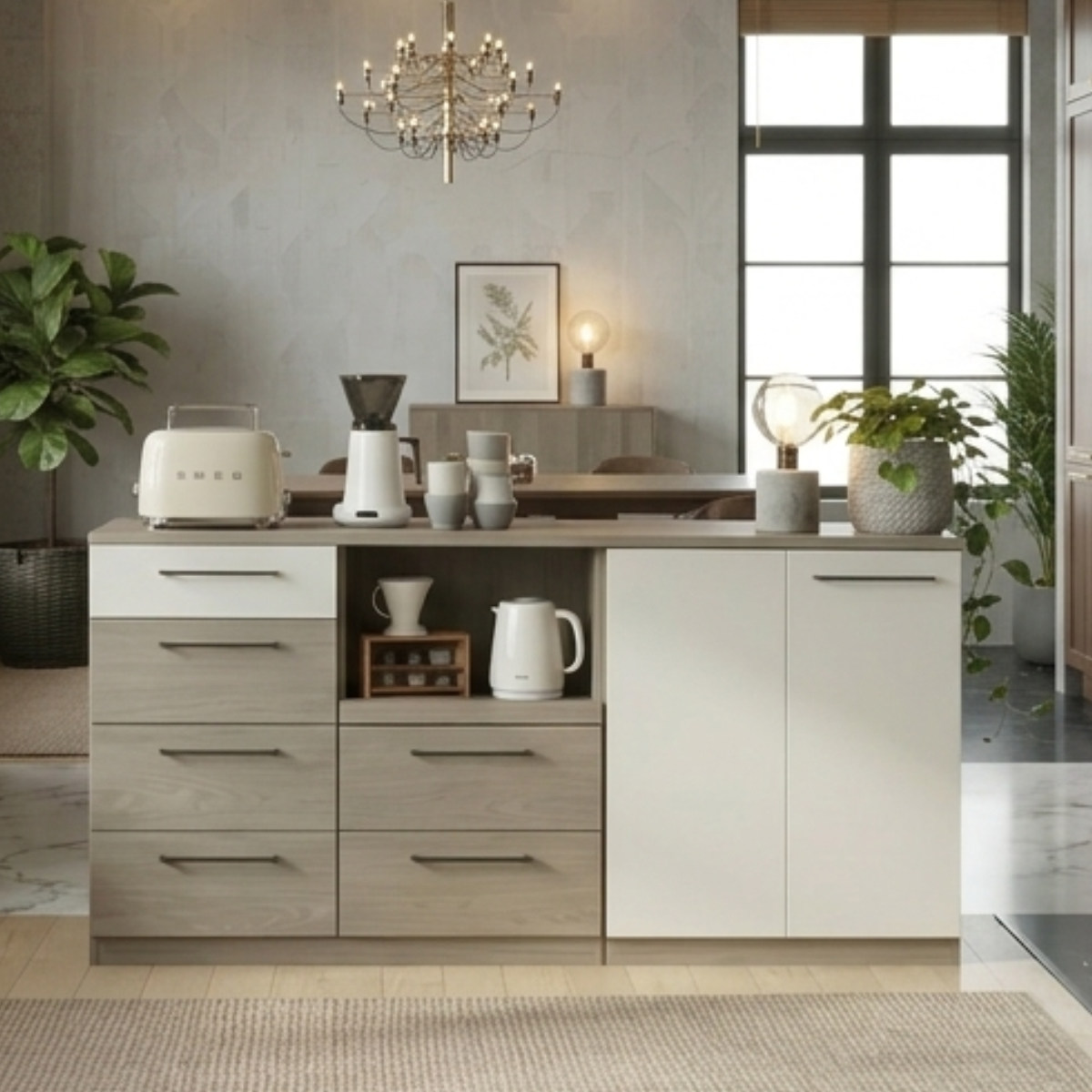 同シリーズを並べて使えば、統一感のある洗練されたインテリアに。横に並べて使うことで、作業効率も収納力もさらにアップします。