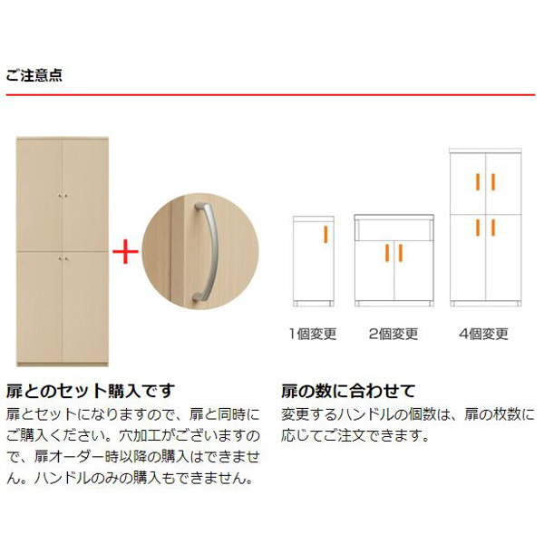 | 備考 | ※扉とセットになりますので、扉と同時にご購入ください。 ※穴加工がございますので、扉オーダー時以降の購入はできません。 |