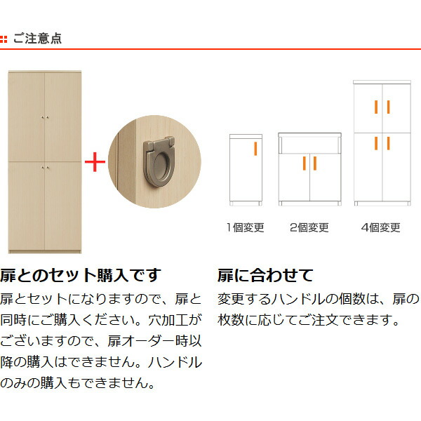 | 備考 | ※扉とセットになりますので、扉と同時にご購入ください。 ※穴加工がございますので、扉オーダー時以降の購入はできません。 |
