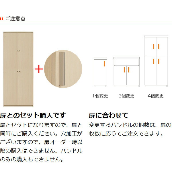 | 備考 | ※扉とセットになりますので、扉と同時にご購入ください。 ※穴加工がございますので、扉オーダー時以降の購入はできません。 |