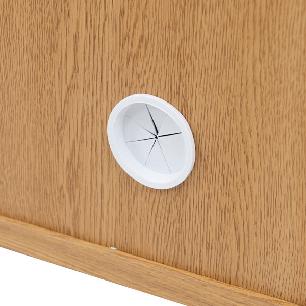 背板に配線穴加工を施しているので配線を通すことができ、ルーターや電子機器類を隠して収納ができます。また、棚板の後方に隙間を開けているので、棚板をまたいでの配線も可能です。