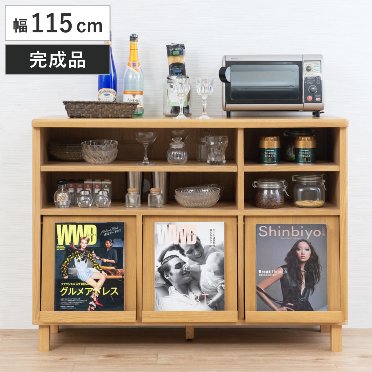 キャビネット 幅115cm 3枚扉 引出し付 天然木 タモ材 ( 収納 リビングチェスト たんす リビング収納 完成品 収納棚 リビングボード 木製ナチュラル A4サイズ対応 北欧風 )