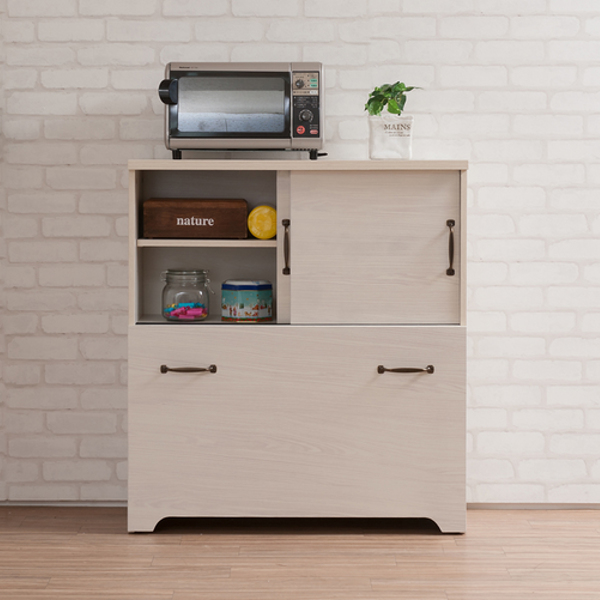 上段の収納部は、狭いダイニングでも使いやすい引き戸式の扉で、お部屋に圧迫感を与えずに収納が増やせます。キッチンやカウンター下収納として、保存食品、食器やキッチン雑貨の整理にもぴったりです。