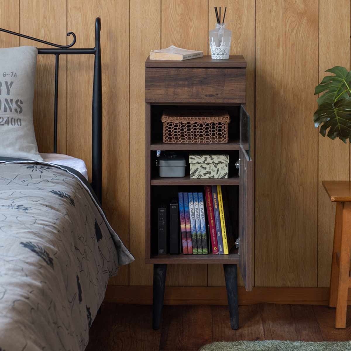 ルーター収納 幅30.5cm FAX台 ヴィンテージ調 Arizona ( ラック 収納 ルーター モデム 収納棚 木製 ディスプレイラック 多目的ラック サイドボード サイドキャビネット シェルフ ブラウン 脚付き 西海岸風 )