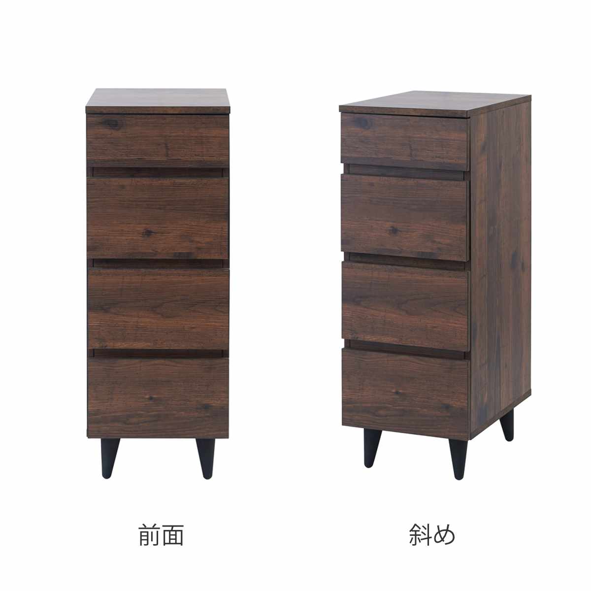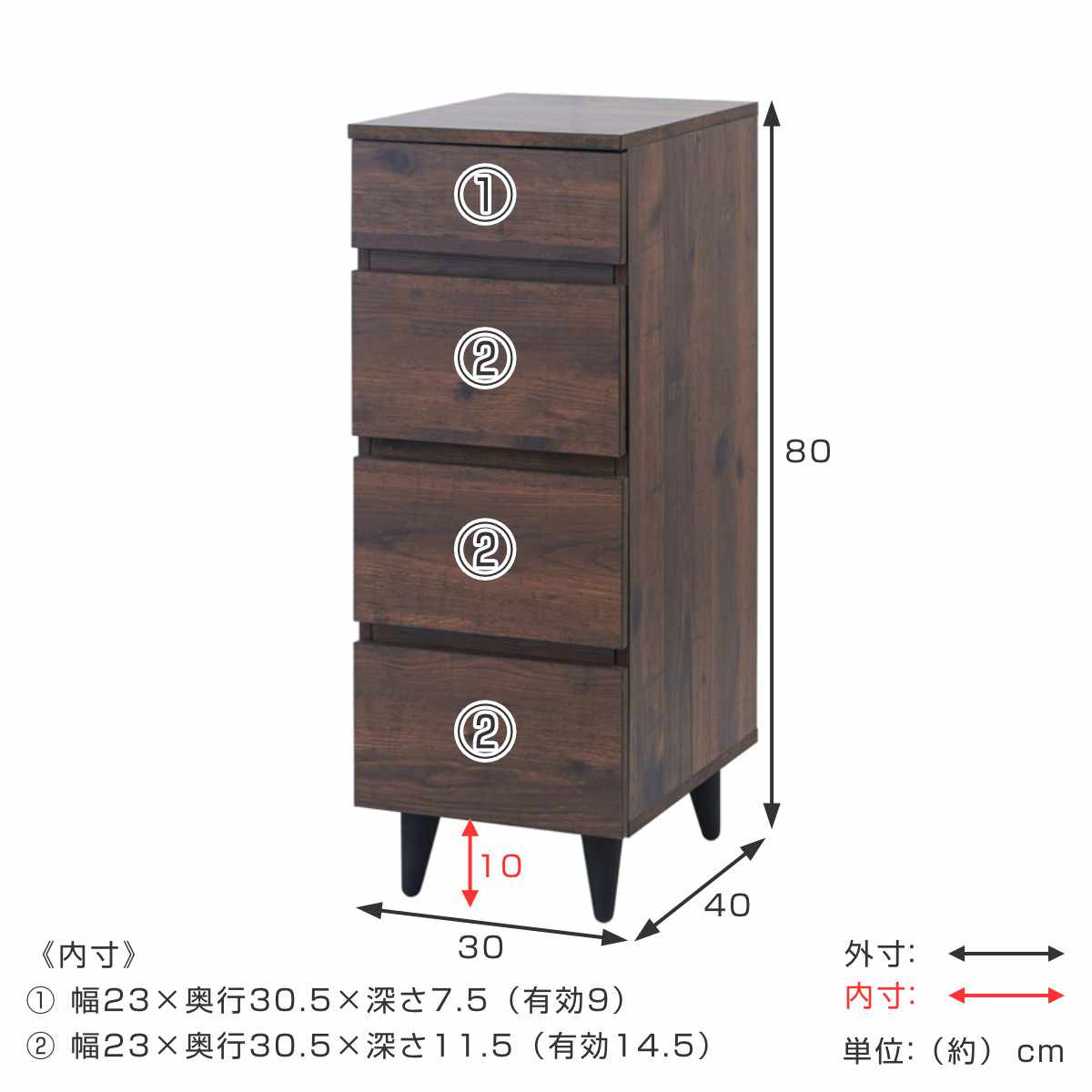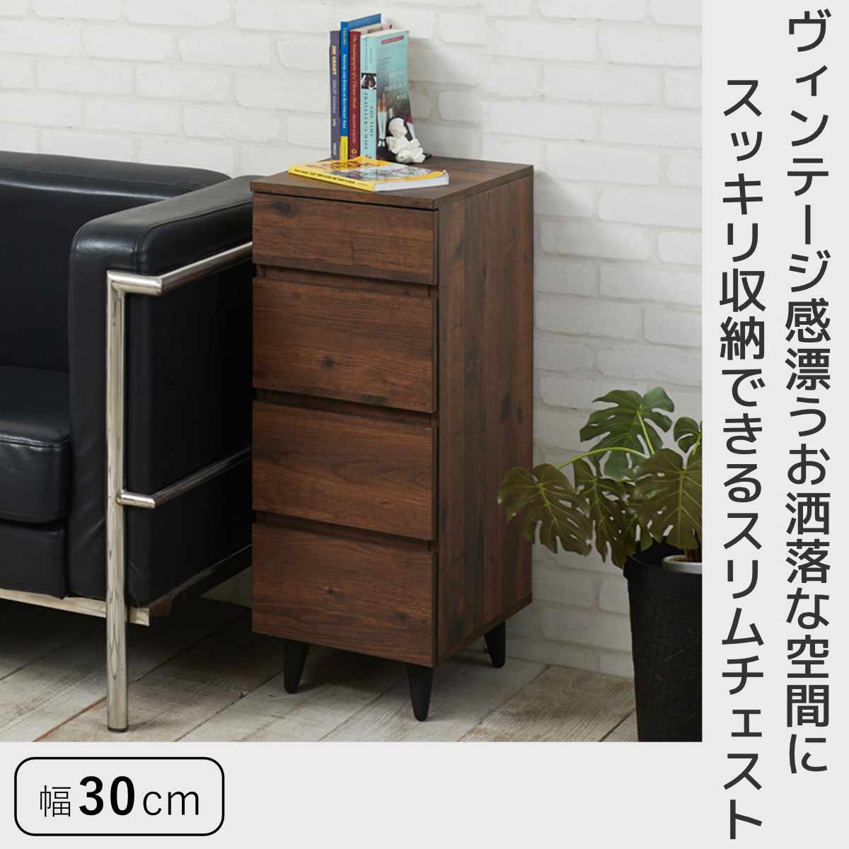 スリムチェスト 幅30cm 4段 ヴィンテージ調 Arizona ( ラック 収納 ルーター モデム 収納棚 ディスプレイラック 多目的ラック サイドボード サイドチェスト シェルフ 引出し ブラウン 脚付き 西海岸風 )