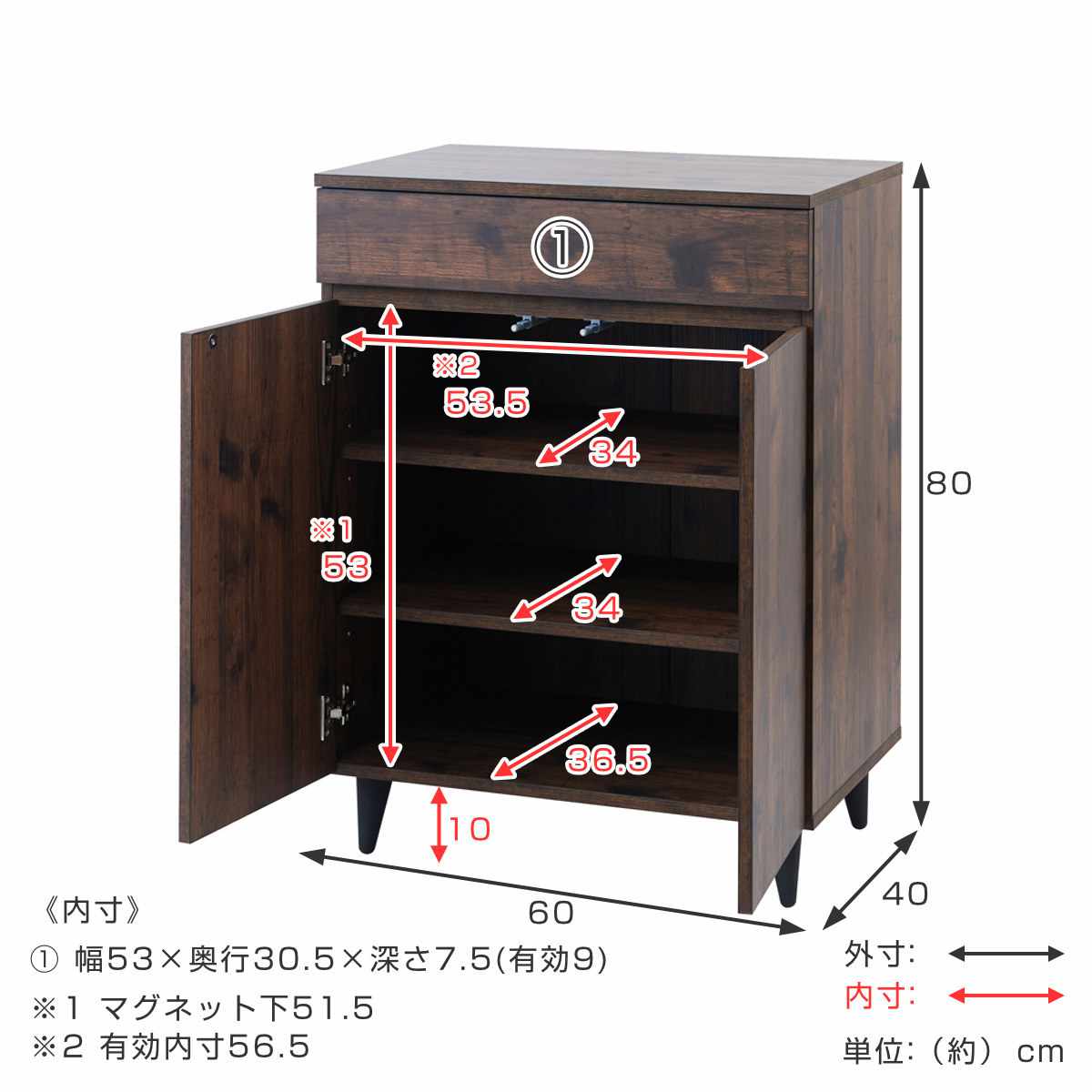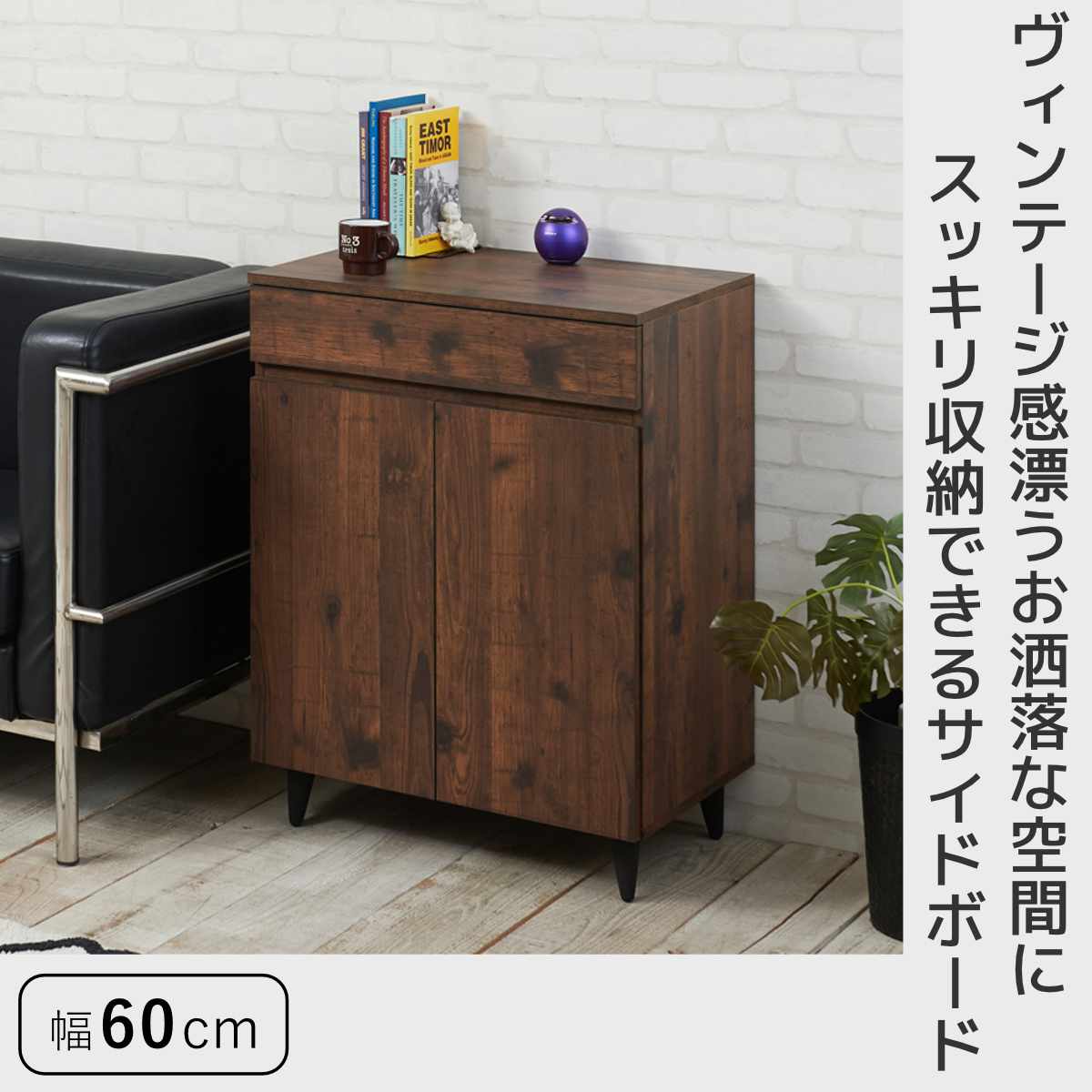 キャビネット 幅60cm リビングボード ヴィンテージ調 Arizona ( リビングキャビネット カウンター 収納棚 食器棚 収納 サイドボード シェルフ 引出し ブラウン 脚付き 西海岸風 )