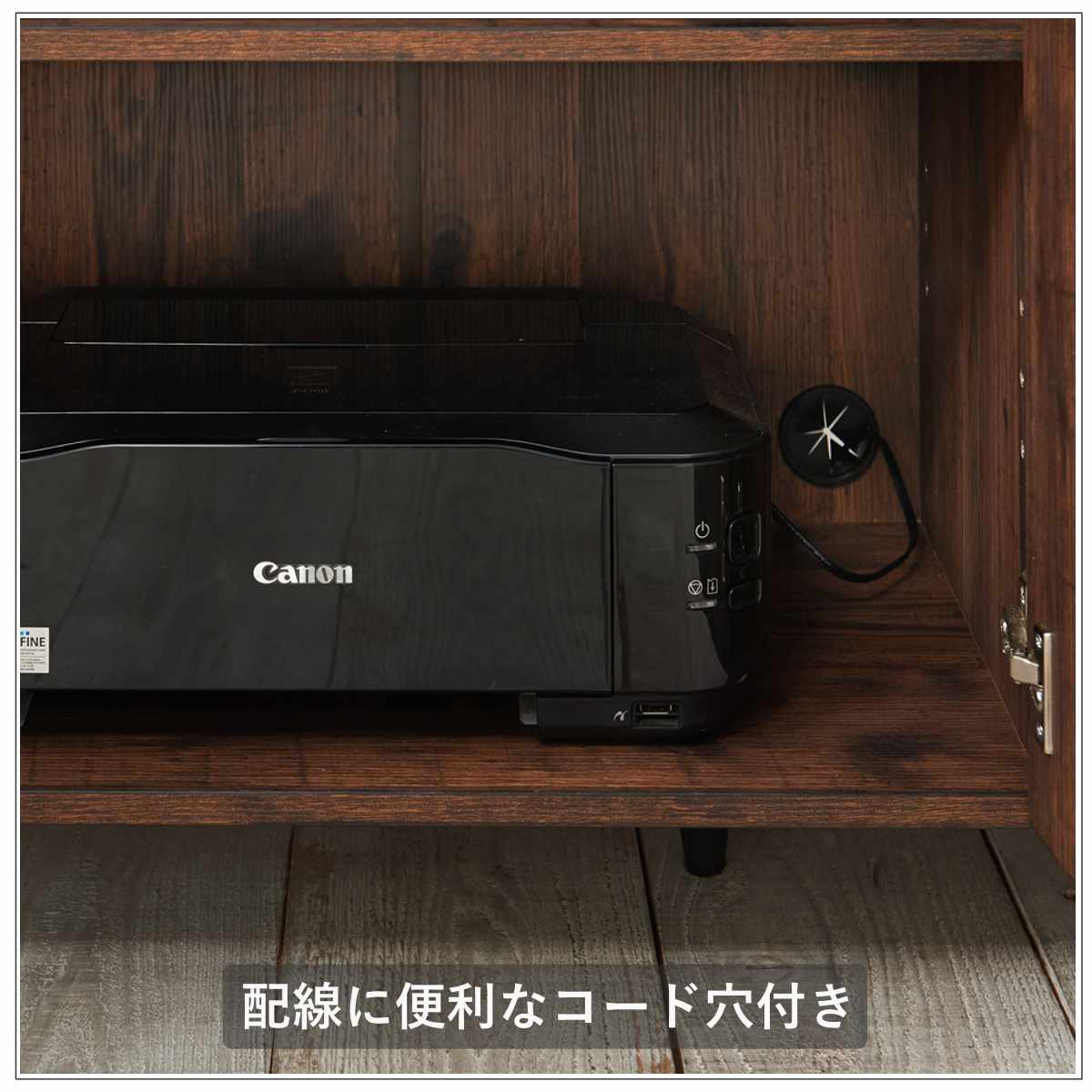 棚板の後ろには1cmの隙間があり、上下の配線がしやすいです。背板にはコード穴も付いているので、配線を背面に逃がすことができます。