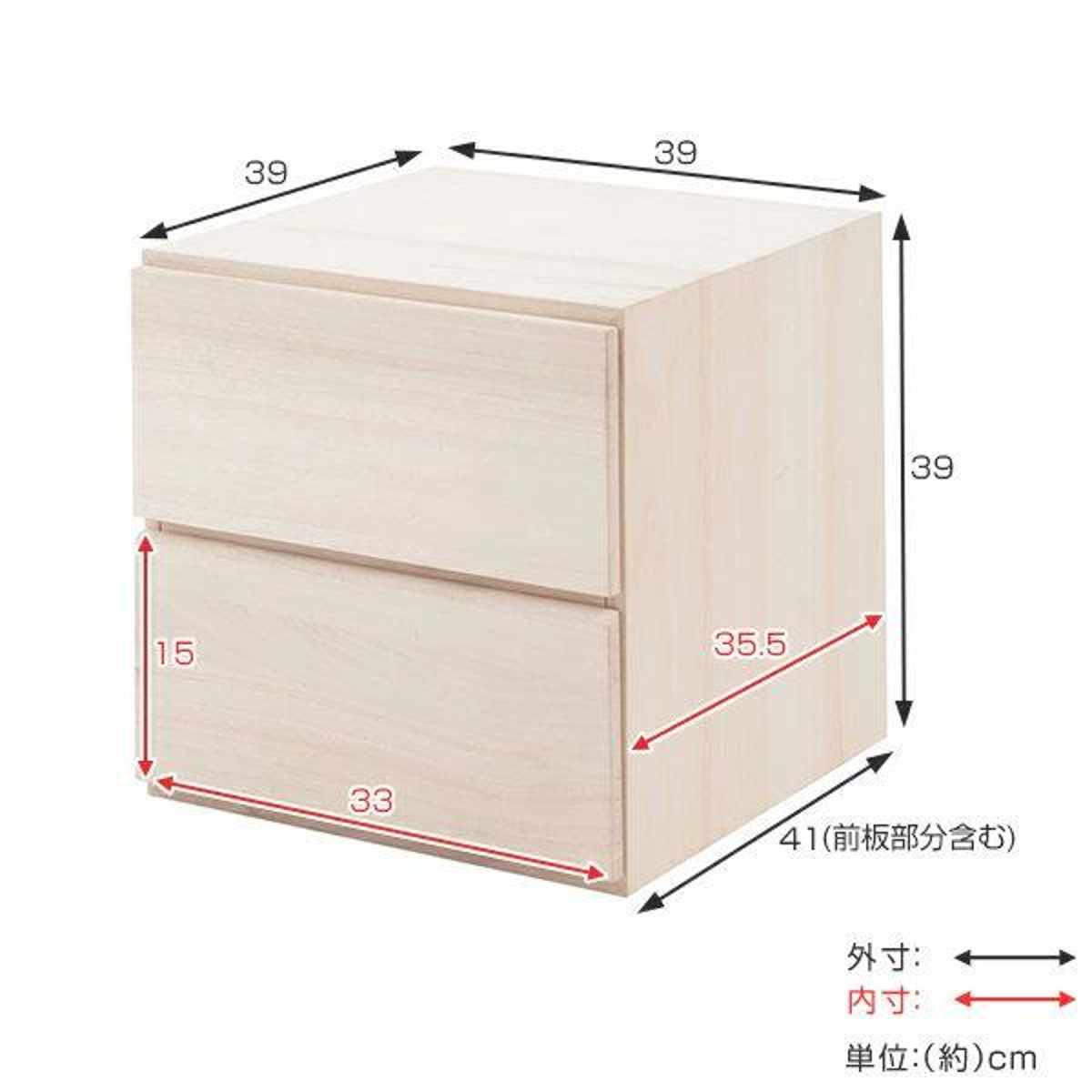 桐 収納チェスト 幅39cm 2段 ユニットボックス 引出しタイプ 生地仕上げ ( 2段チェスト 収納 ミニチェスト 引き出し リビングチェスト 完成品 収納ボックス 木製チェスト 木製 木目 ナチュラル おしゃれ ひとり暮らし )