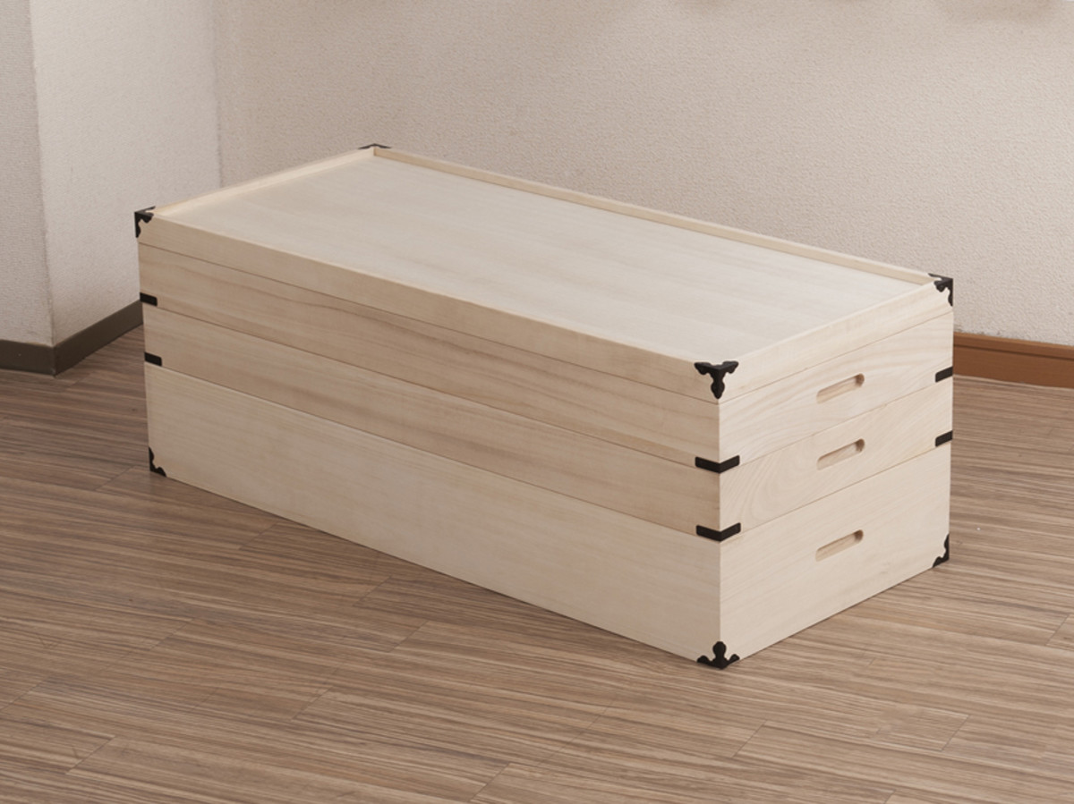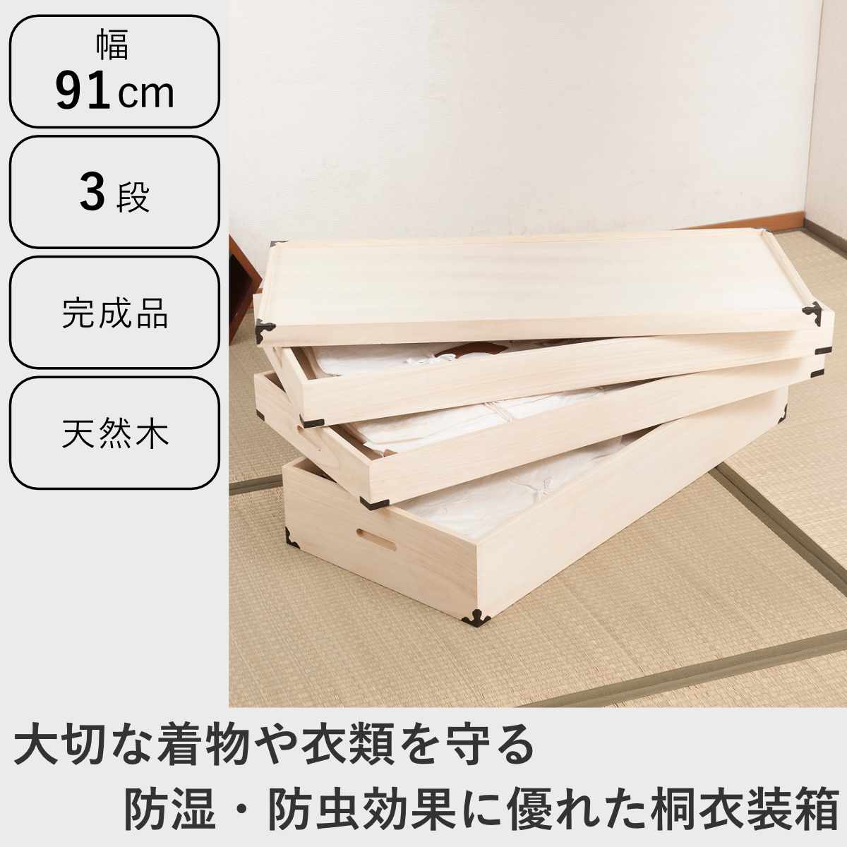 桐 衣装ケース 幅91cm 3段 高さ33cm 衣裳箱 隅金具付 天然木 完成品 ( 桐衣装箱 衣装箱 木製 桐箱 衣類収納 収納 桐箪笥 桐タンス 蓋つき フタ付き 三段 ケース ボックス 収納ケース )