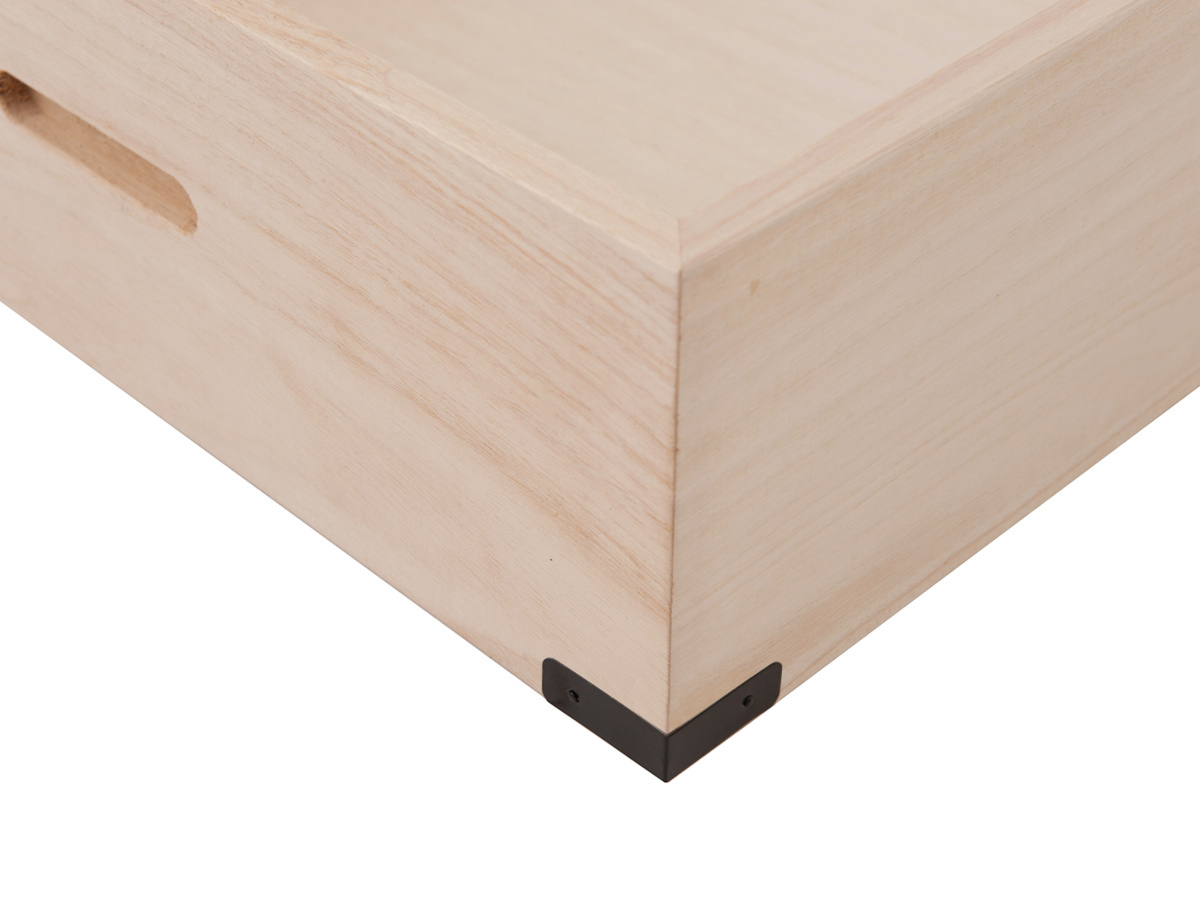 隅には補強の役割も担っている金属製の飾り金具が付いています。細部に至るまで丁寧に仕上げた逸品を長くお楽しみください。