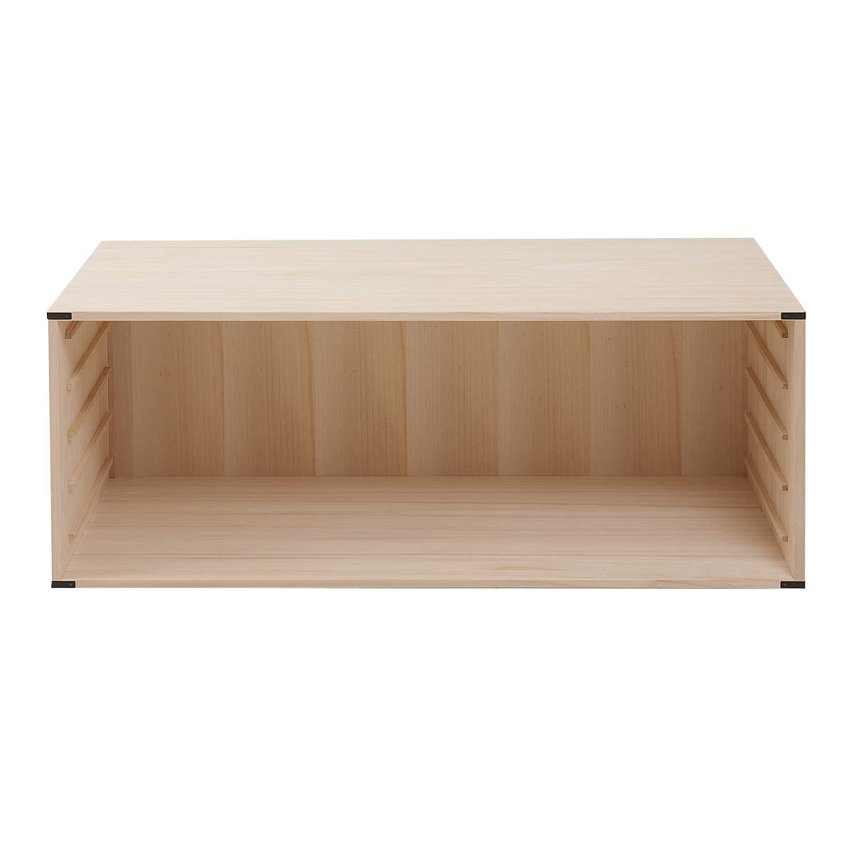 台輪が無い桐たんすなので、上置きにした際に引出しのつながりも自然に見えます。シリーズ品と組み合せて上置き用としての使用はもちろん、床に直接置いて単体での使用も可能です。