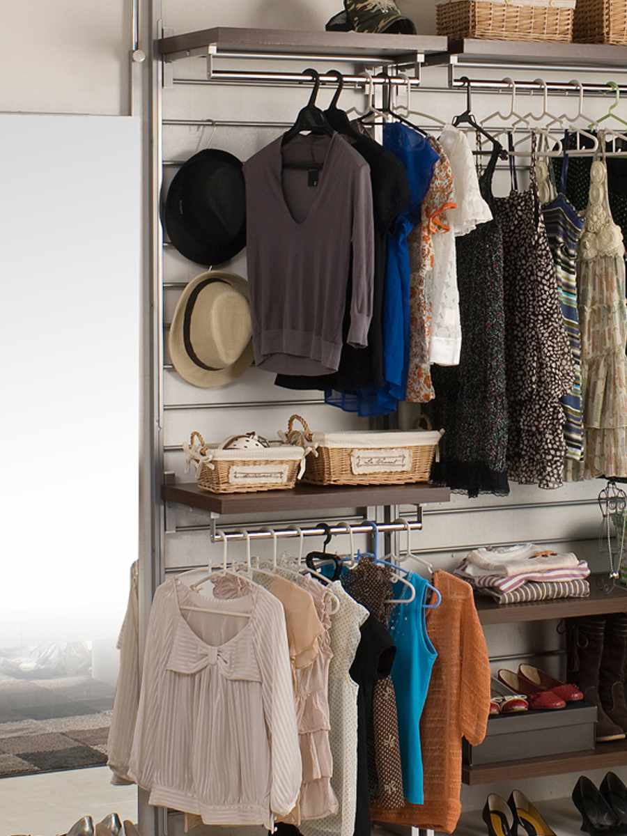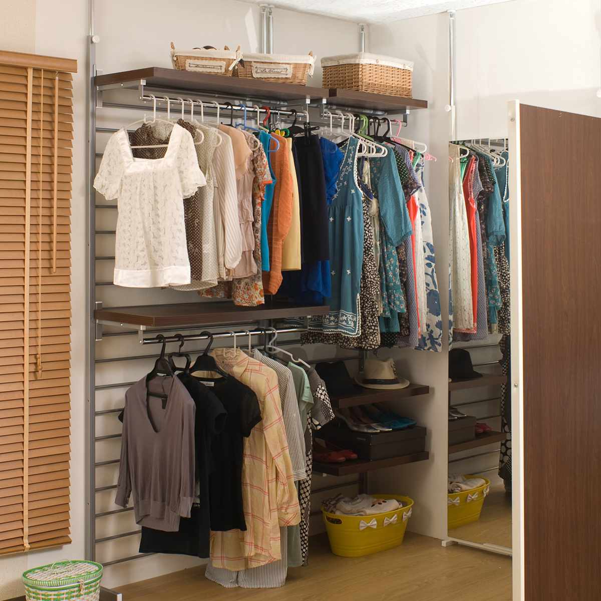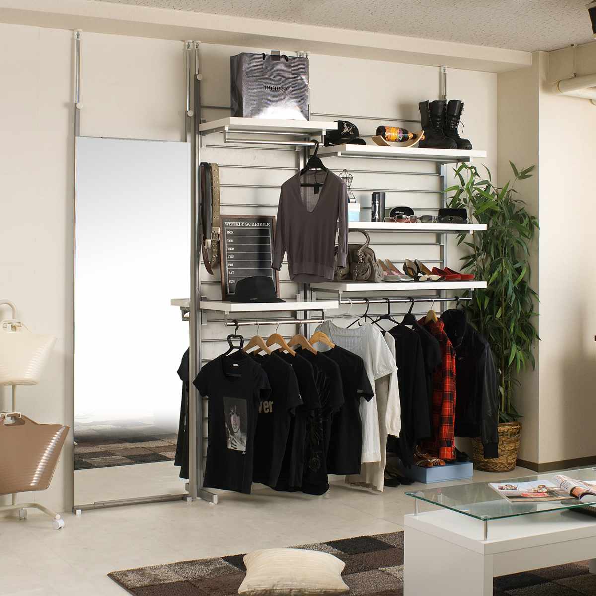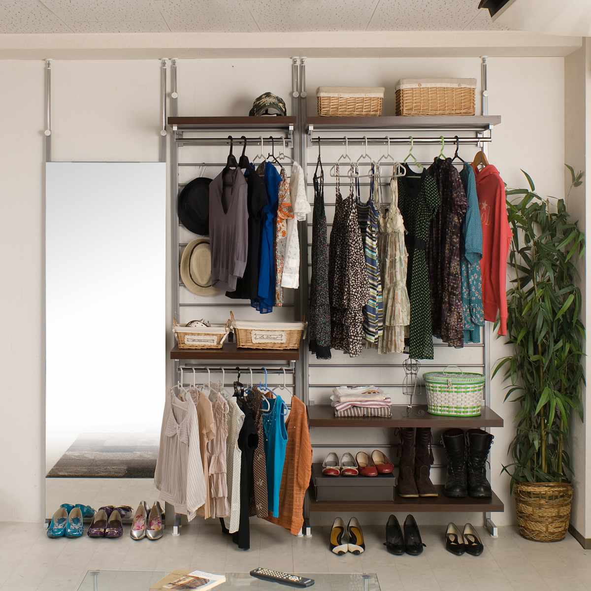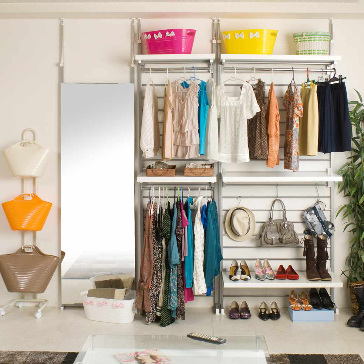 機能的で、お店のようにオシャレに収納することができる突っ張りハンガーラックです。背面はラダー式なので、衣類を掛けるだけではなく、ベルトや帽子、バッグなどの小物も一緒に掛けることができます。