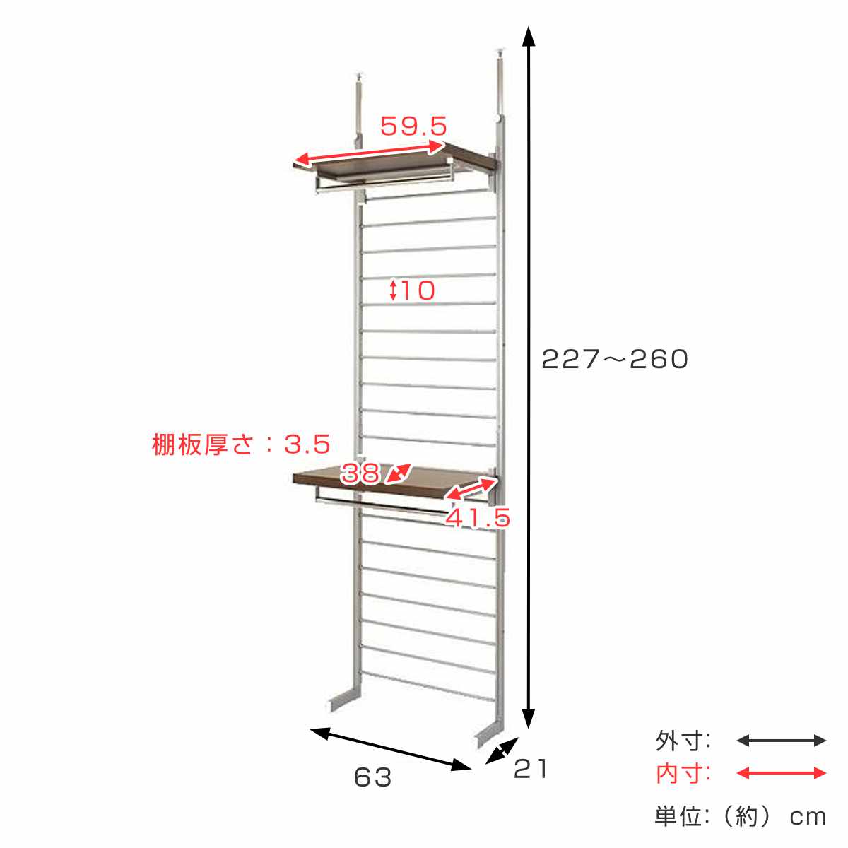 | サイズ | 本体:(約)幅63×奥行41.5×高さ227~260cm、棚板:(約)幅59.5×奥行38×厚み3.5cm |