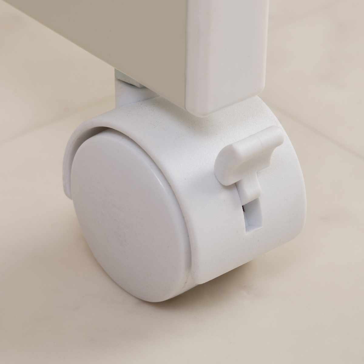 簡単に移動できるキャスター付きです。ストッパーが付いているので、動かさないときはしっかり固定することができます。