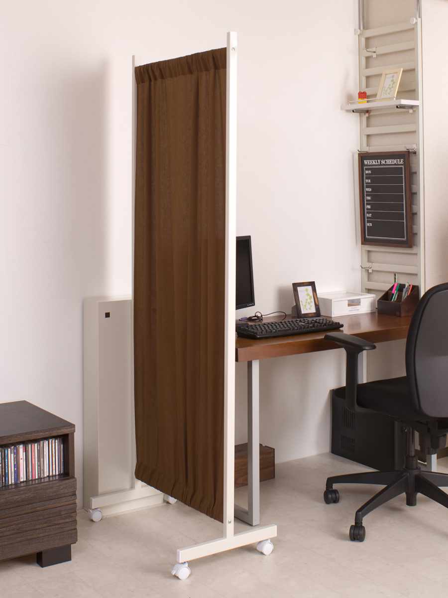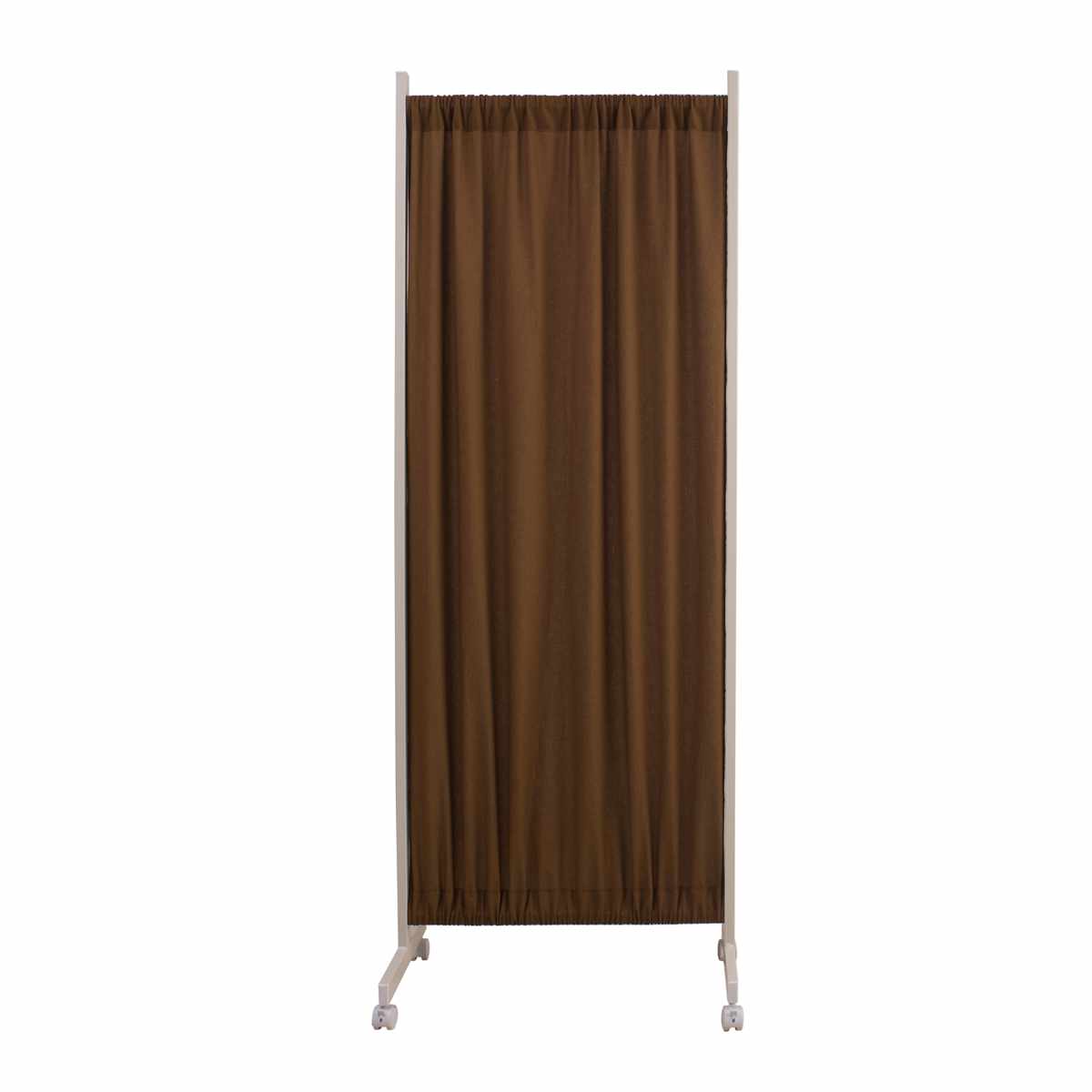 間仕切りカーテンパーテーション 幅64.5cm 高さ180.5cm ( パーテーション 間仕切り カーテン 衝立 目隠し キャスター 移動 自立 伸縮 仕切り ハンガー掛け パーティション 自立式 オフィス 事務所 会社 商談 スペース ) 【ブラウン】