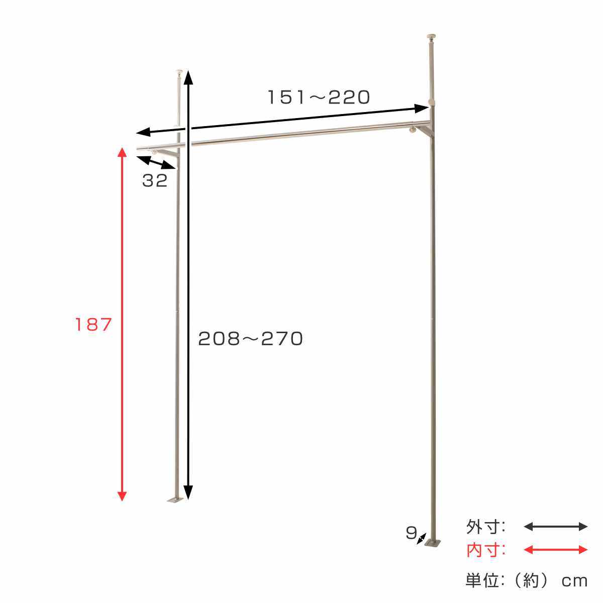 | サイズ | 約 幅151~220×奥行32×高さ208~270(cm) |